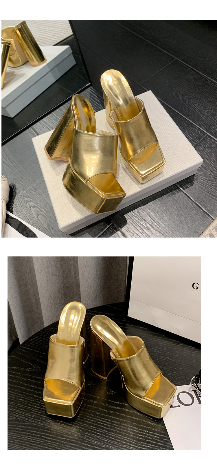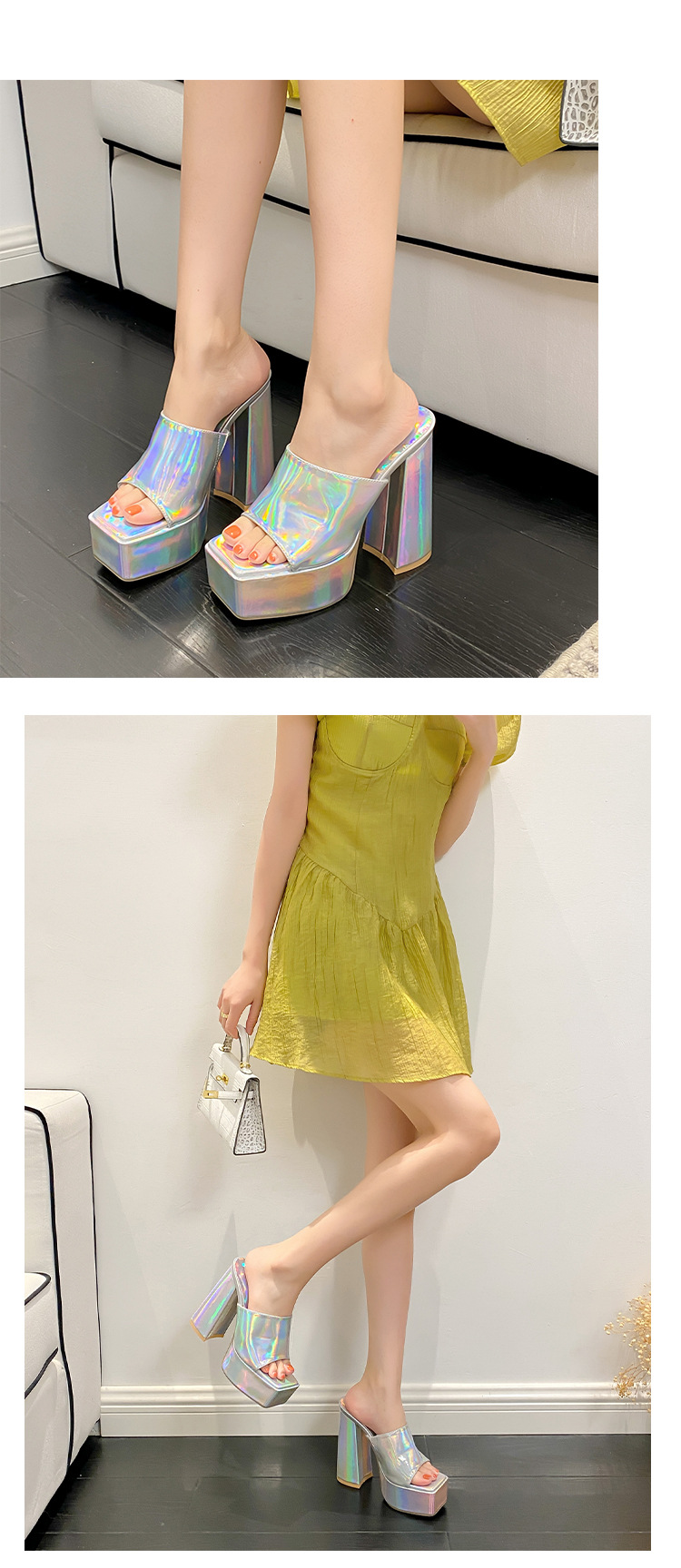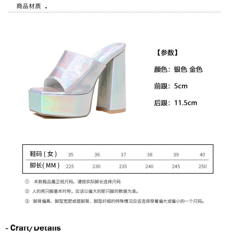 2024 국경을 넘는 새로운 현아 고글 실버 방수 플랫폼 특허 가죽 두꺼운 하이힐 스퀘어 오픈 발가락 여성용 샌들 및 슬리퍼