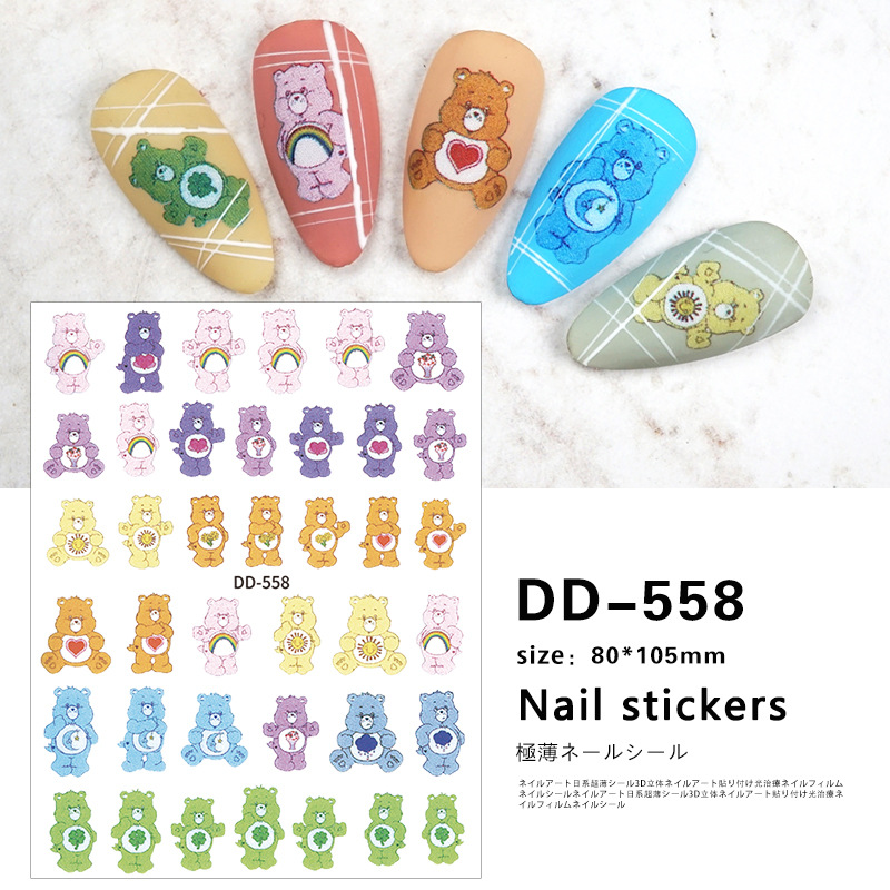 Redanco 새로운 3D 폭발 만화 귀여운 곰 패턴 네일 스티커 다시 접착제 네일 스티커 보석 도매스토어 가기
