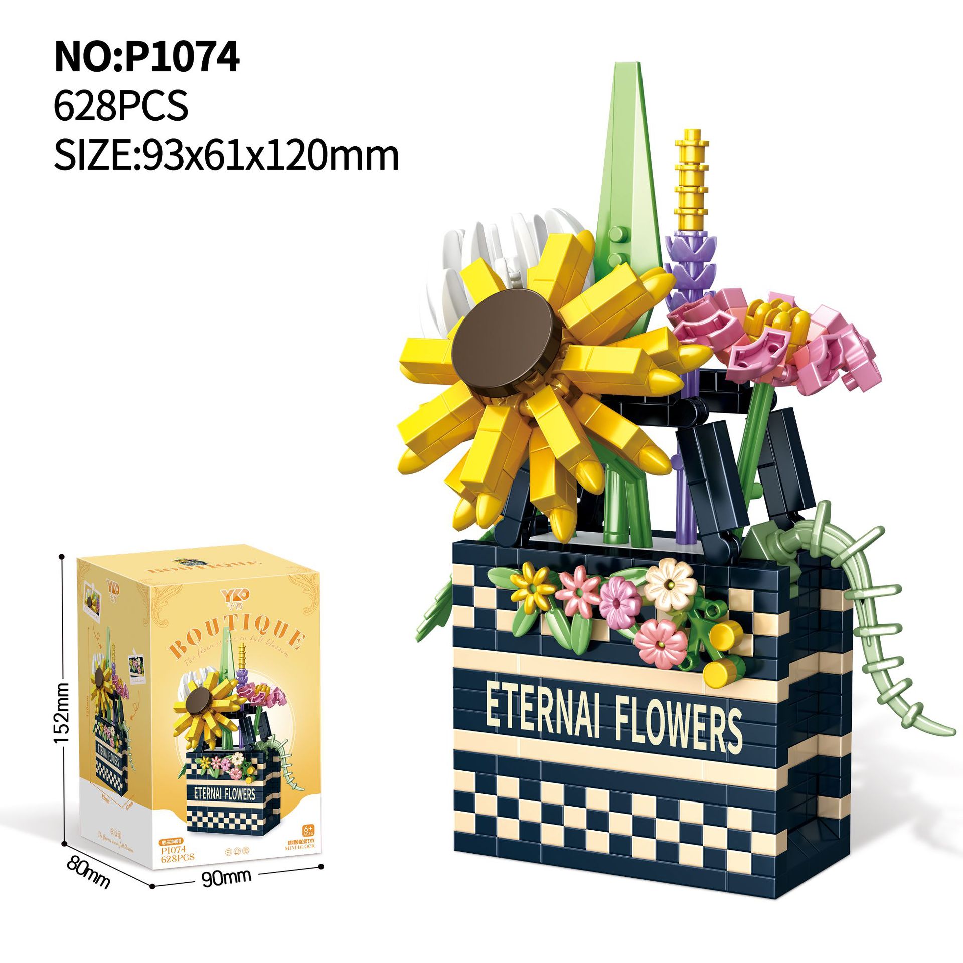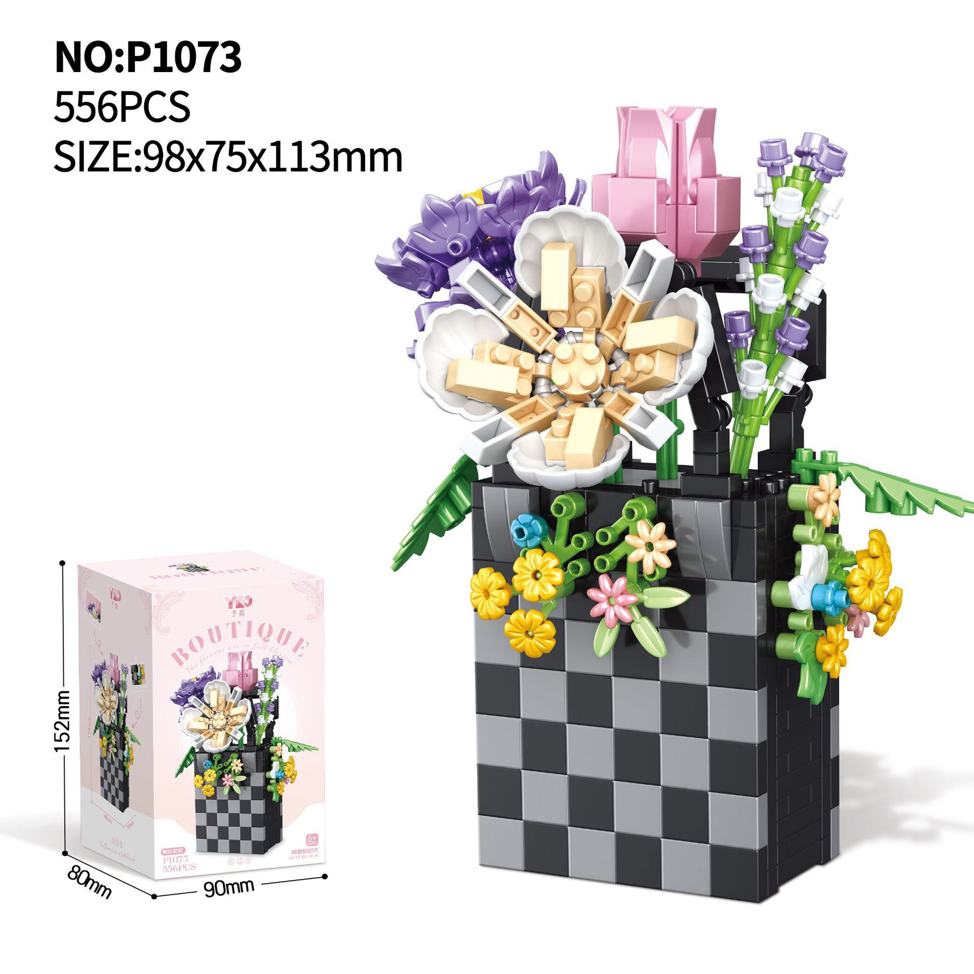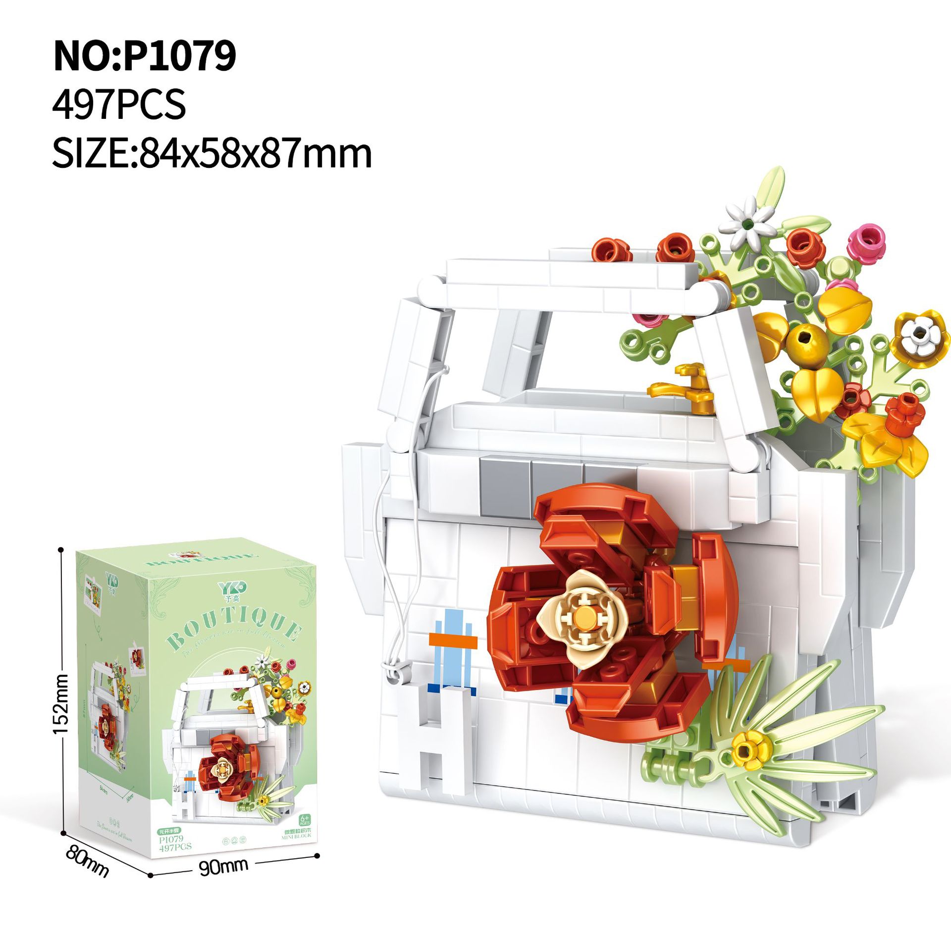 유 높은 작은 입자 빌딩 블록 퍼즐 조립 빌딩 블록 장난감 P1072-P1080 꽃 바구니 가방 도매 세대스토어 가기