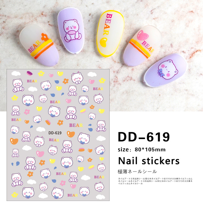 Redanco 새로운 3D 폭발 만화 귀여운 곰 패턴 네일 스티커 다시 접착제 네일 스티커 보석 도매스토어 가기