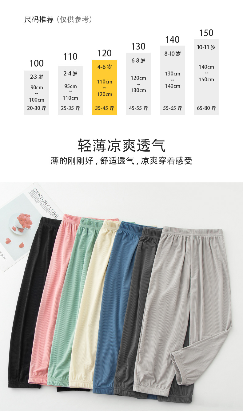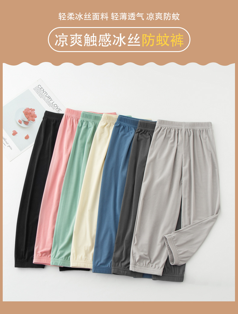 아기의 홈 아이스 실크 안티 모기 바지 여름 얇은 흔들기 코튼 소년과 소녀 어린이 바지 아기 바지 봄과 가을 여름