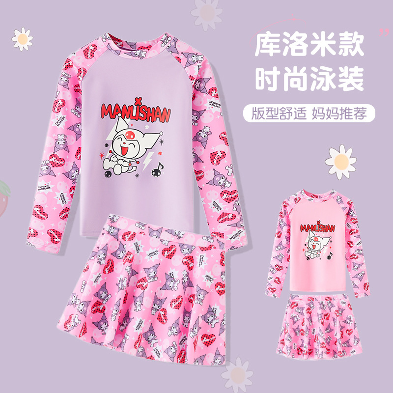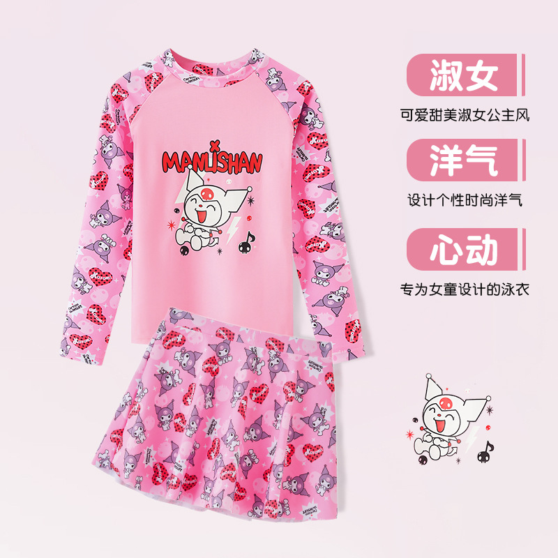 어린이 수영복 여자 여중생 여름 방학 수영복 보수 분할 A-스커트 수영복