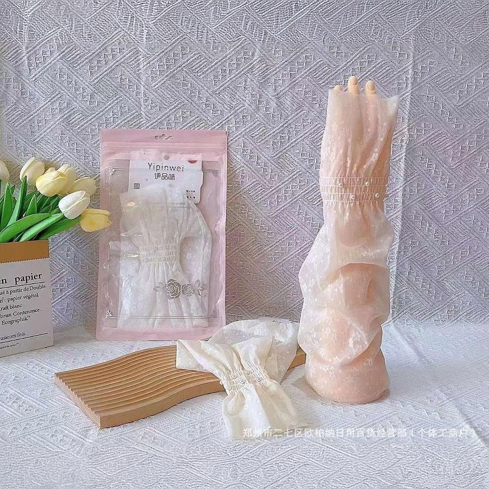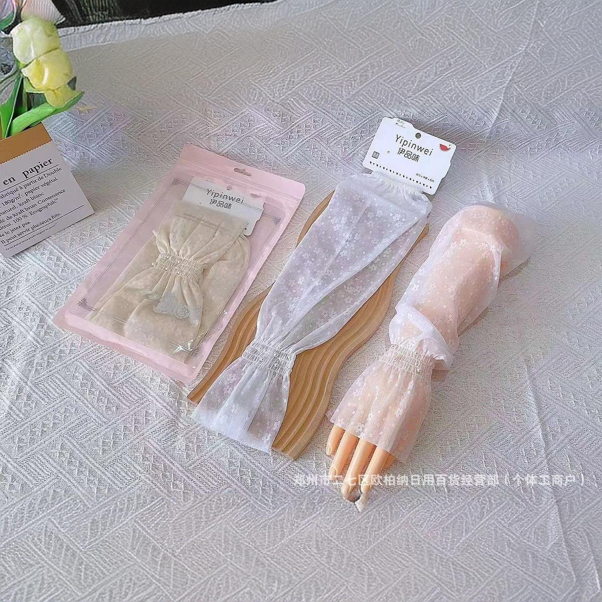 쉬폰 선 스크린 얼음 소매 여름 모자 아름다운 꽃 선 스크린 세트 야외 여행 선 스크린 모자 활동 배수스토어 가기