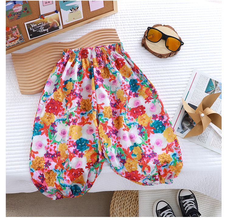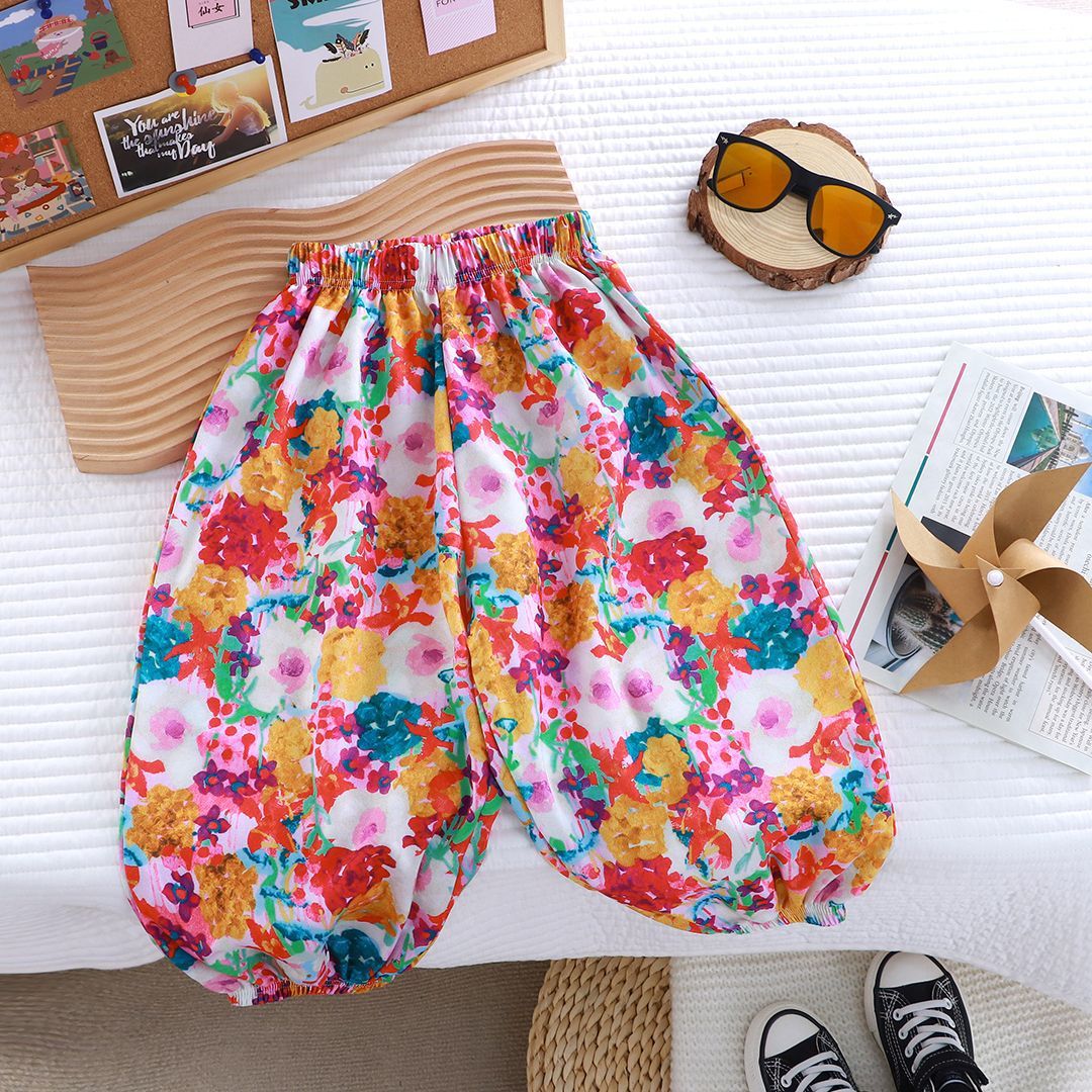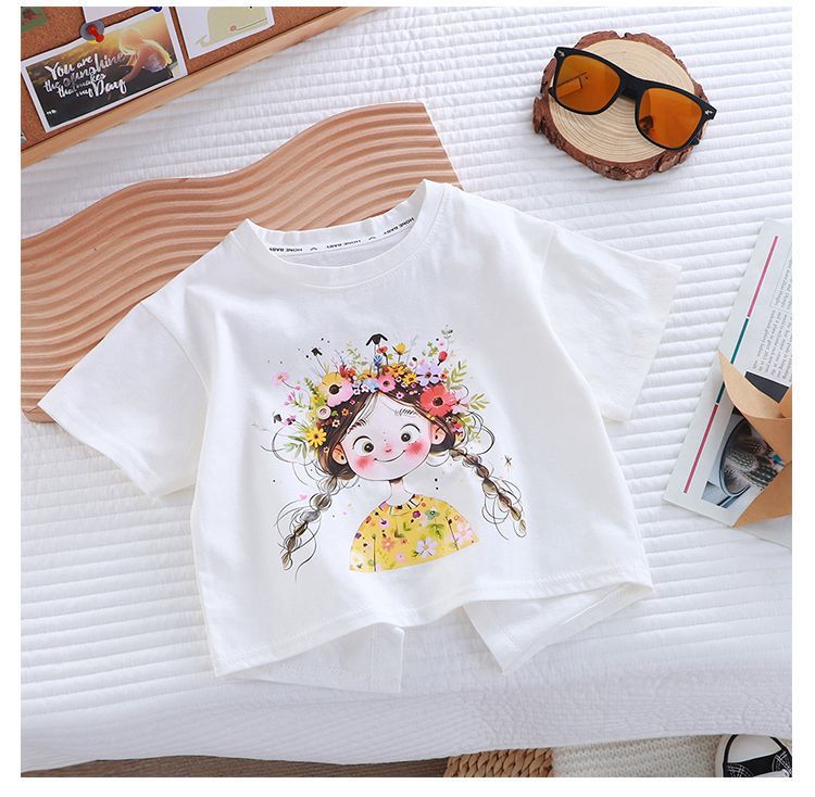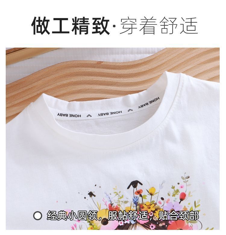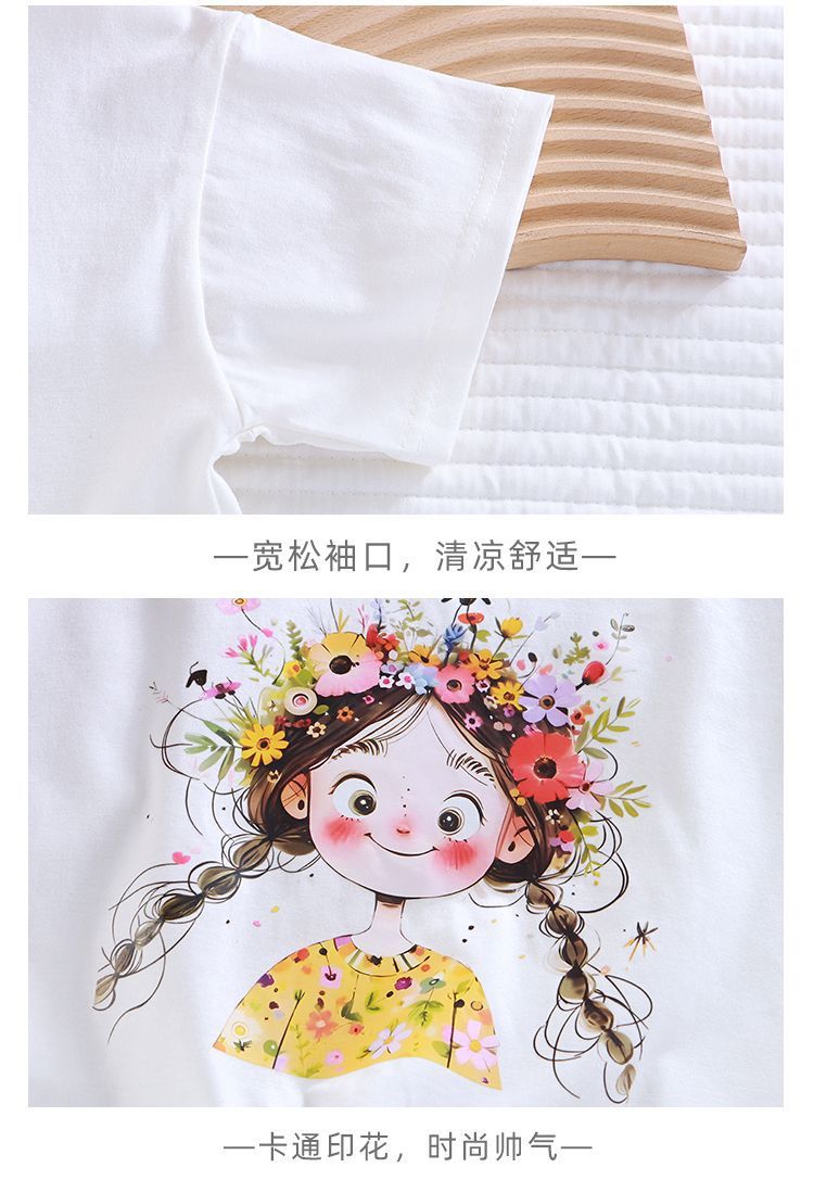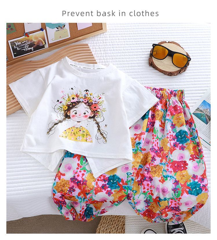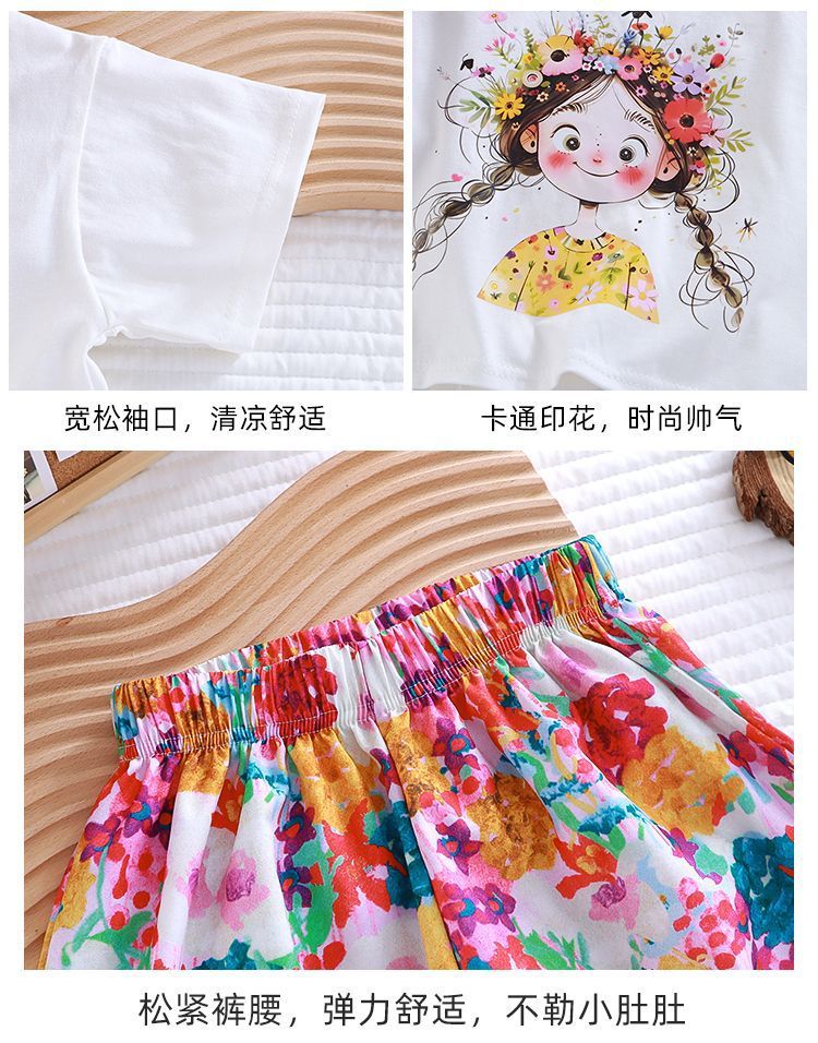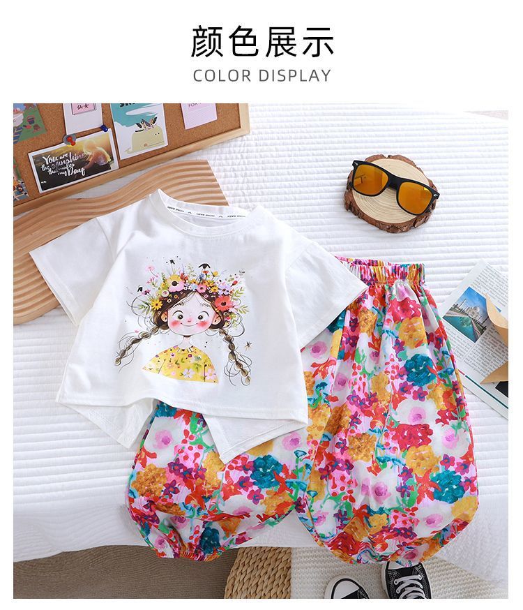 여아 2024 만화 반팔 꽃무늬 바지 세트 여자 아기 공주풍 여름 얇은 투피스 세트 9부 바지스토어 가기