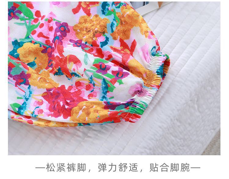 여아 2024 만화 반팔 꽃무늬 바지 세트 여자 아기 공주풍 여름 얇은 투피스 세트 9부 바지