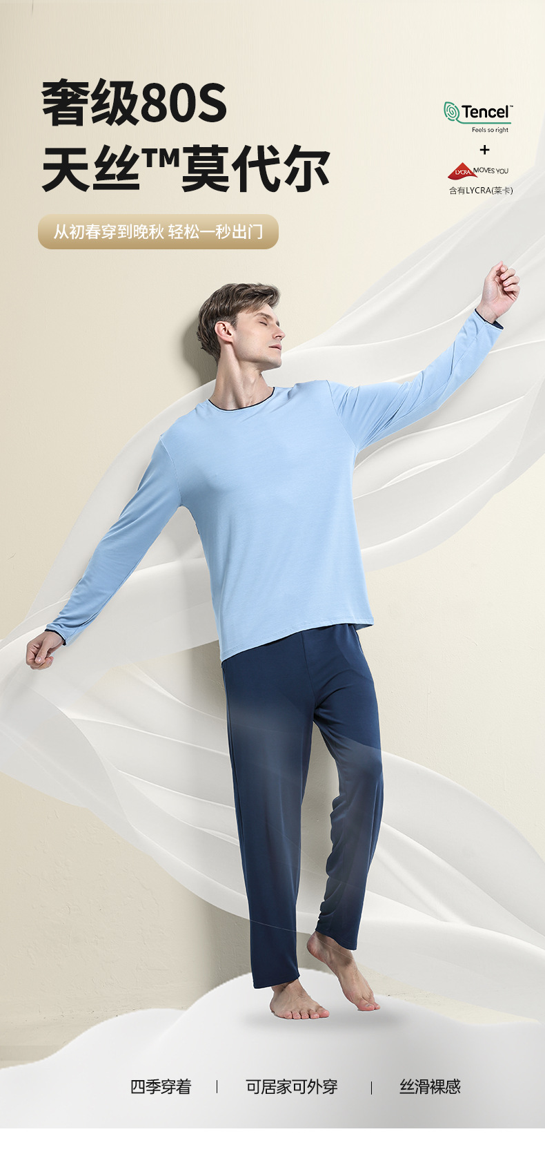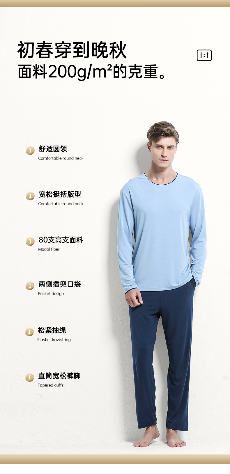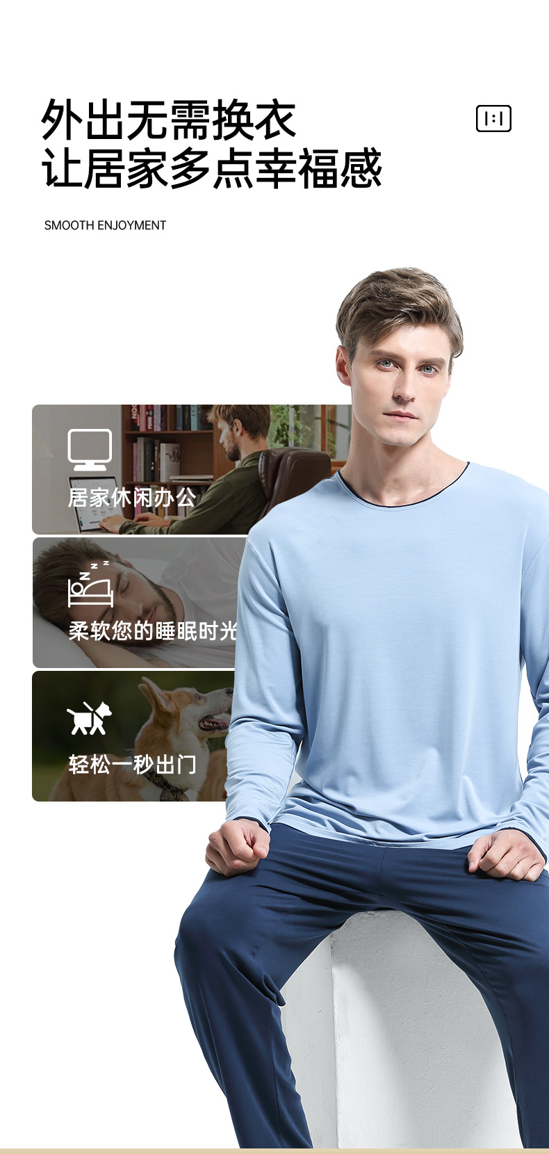 [카운터와 동일] 새로운 80수 양면 모달 남성 잠옷 세트 얇은 가을 옷과 가을 바지 홈웨어