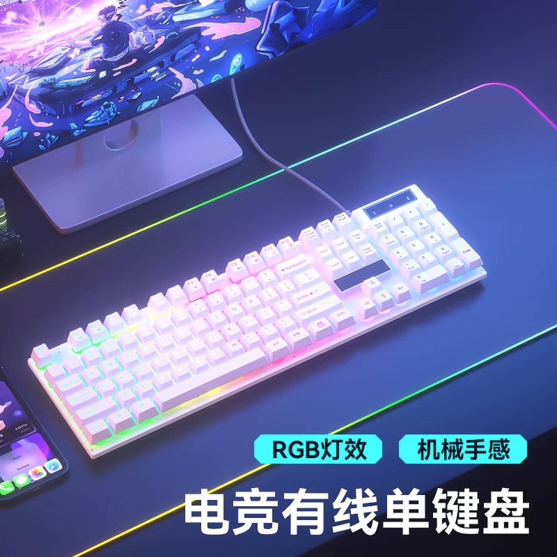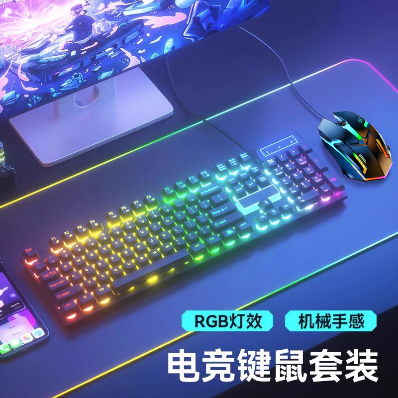 • 키보드 및 마우스 세트 + 무료 마우스 패드 Qingying Zhen 기계적 느낌 | 풀 키 무충돌 녹색 및 어두운 폭풍 - 무지개 빛