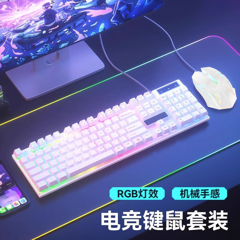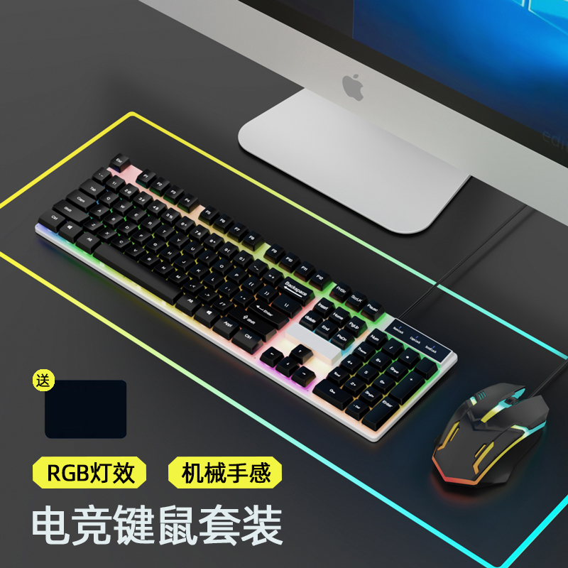 전자 스포츠 키보드 마우스 세트 기계 느낌 사무실 게임 컴퓨터 음소거 유선 마우스 패드 3 피스 세트 칭잉