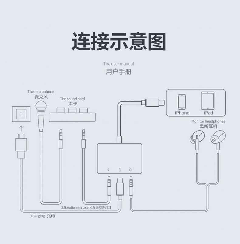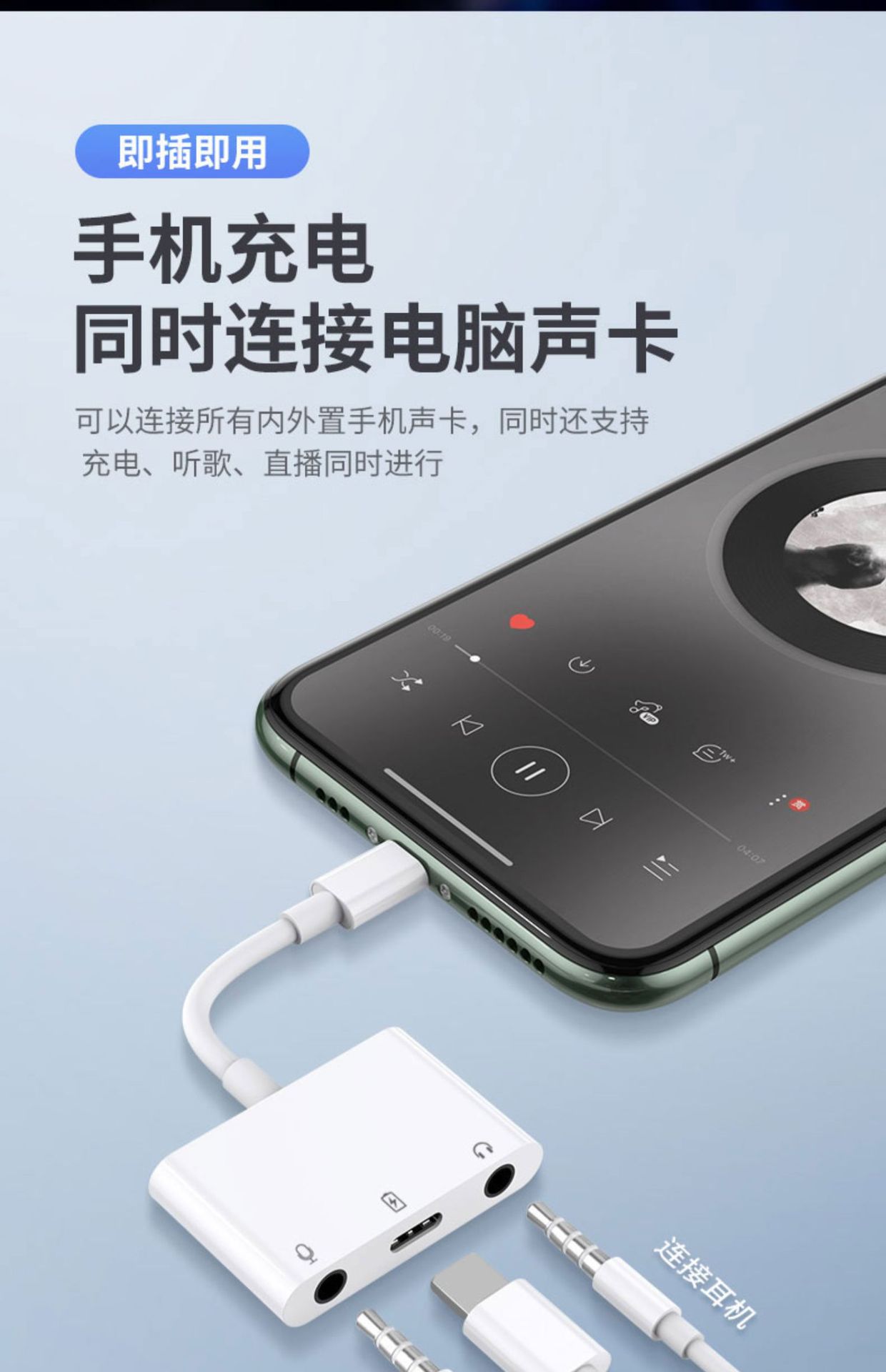 • Apple 듀얼 3.5+ 충전 사운드 카드 라이브 방송, 마이크 연결, 음악 듣기)