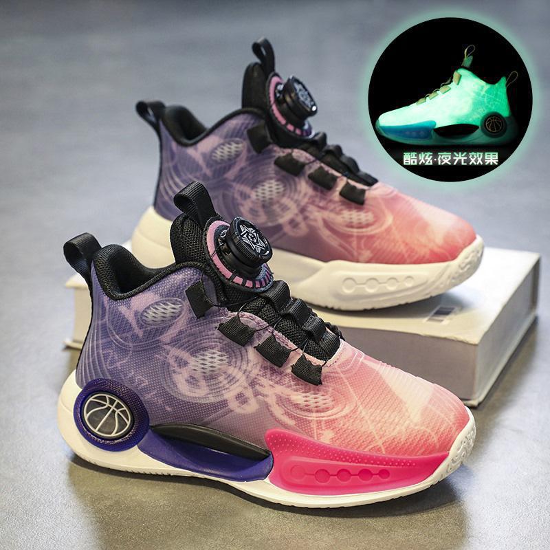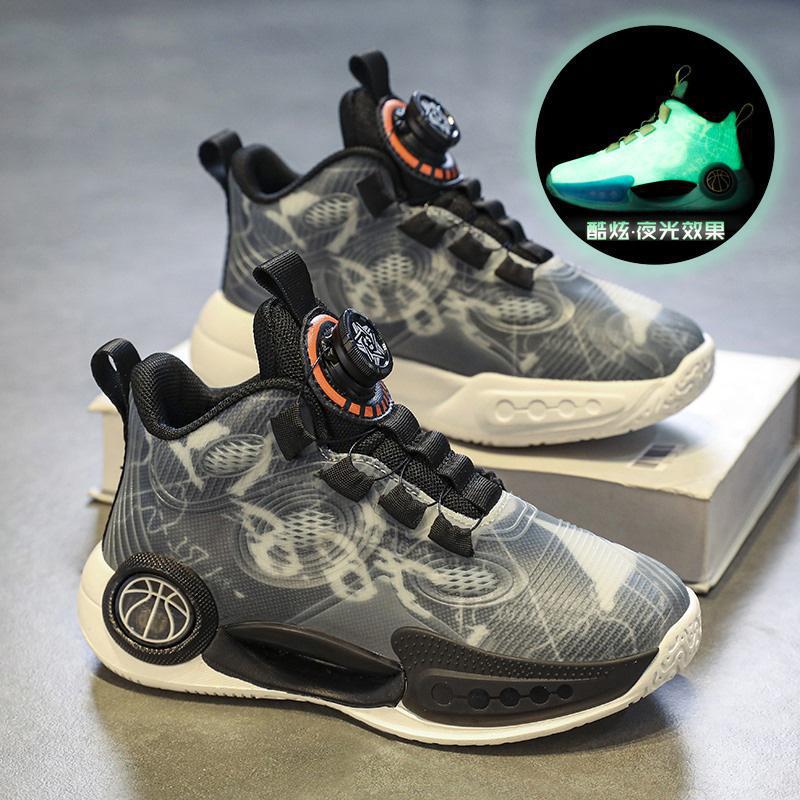 어린이 빛나는 운동화 2023 봄과 여름 새 소년 운동화 중 큰 어린이 회전 버클 농구 신발 학생 조수스토어 가기