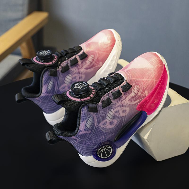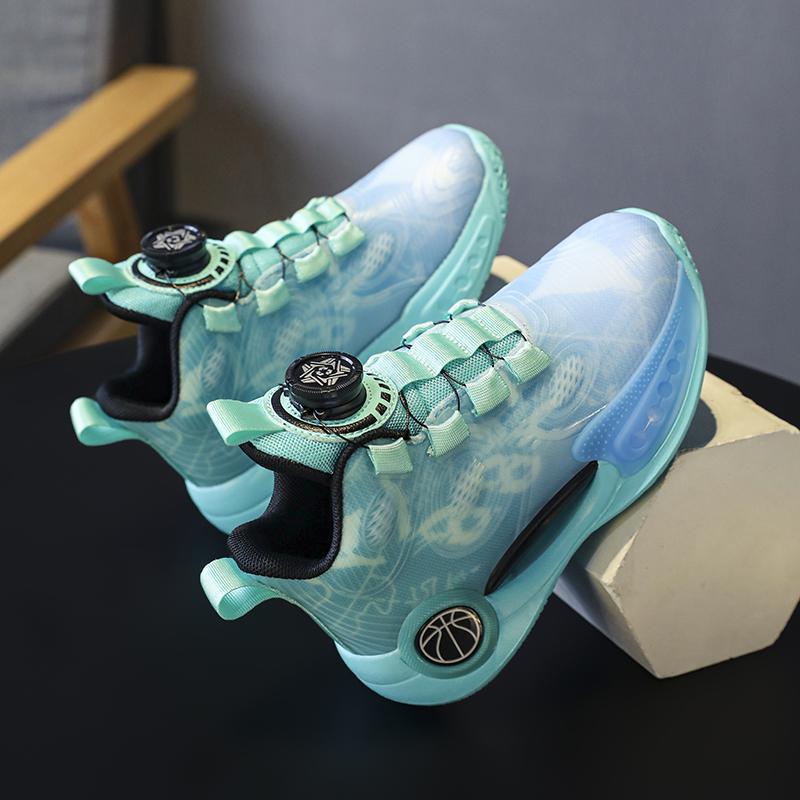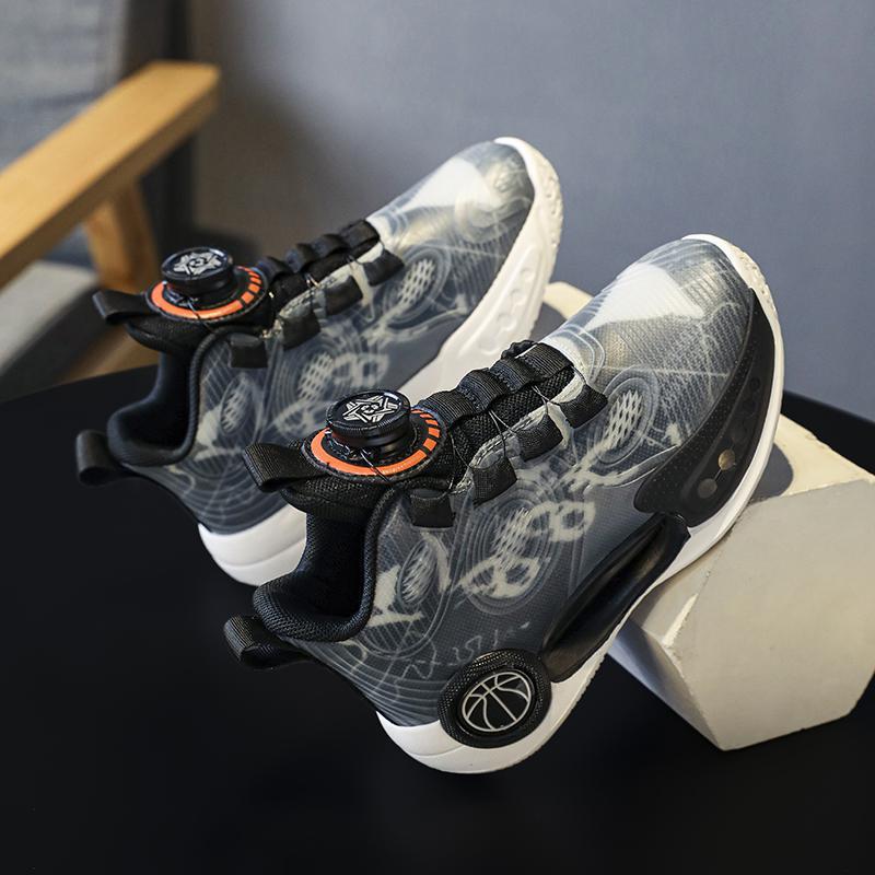 어린이 빛나는 운동화 2023 봄과 여름 새 소년 운동화 중 큰 어린이 회전 버클 농구 신발 학생 조수