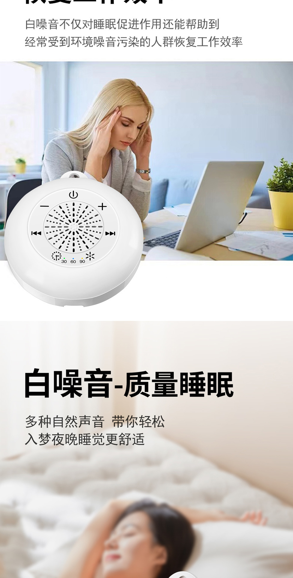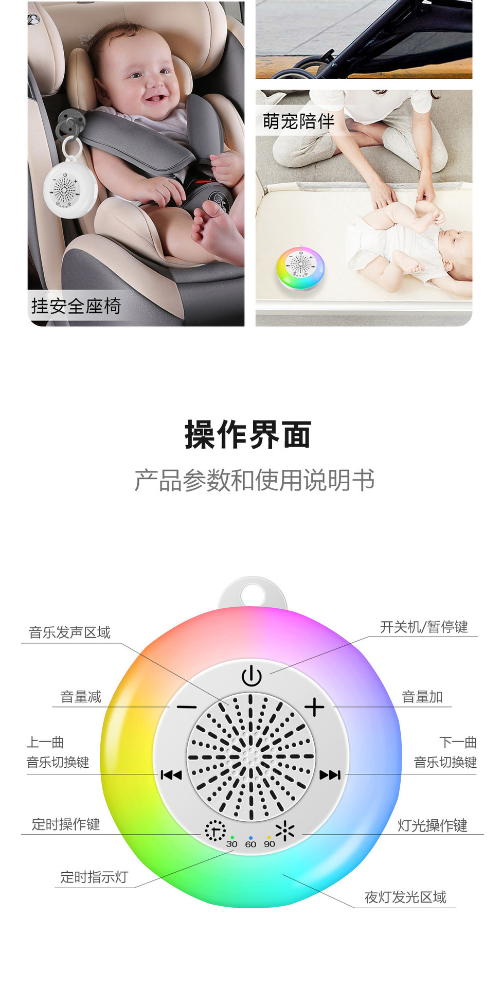 개인 모델 현장 휴대용 백색 소음 수면 장치 백색 소음 기계 음악 아기 수면 장치 따뜻한 빛 야간 조명스토어 가기