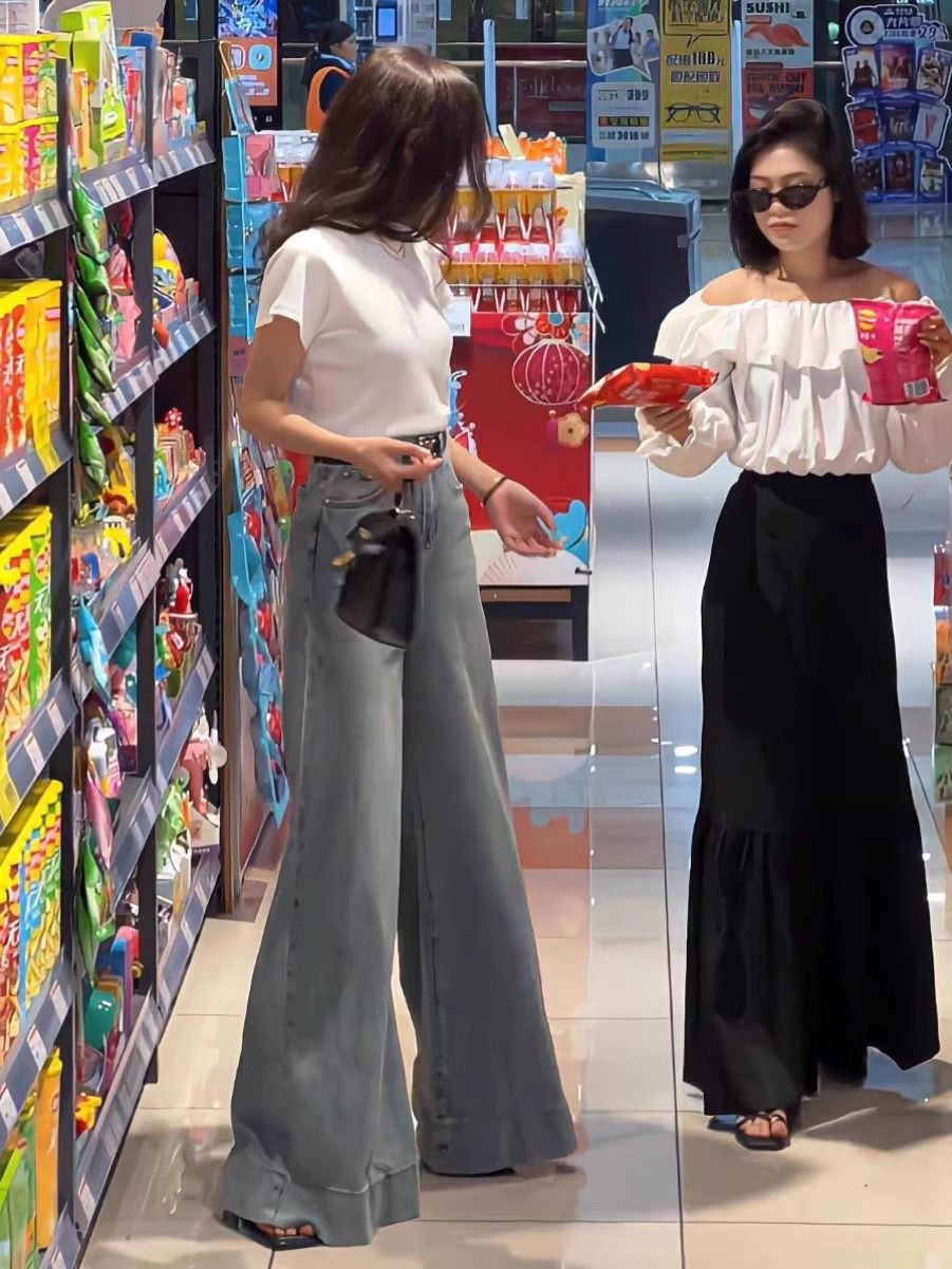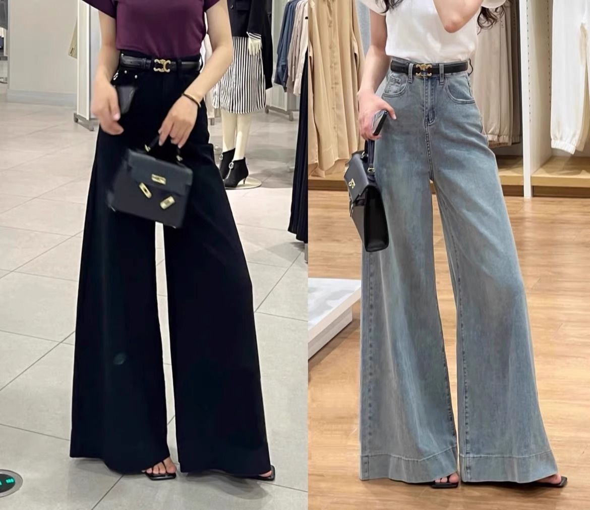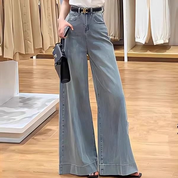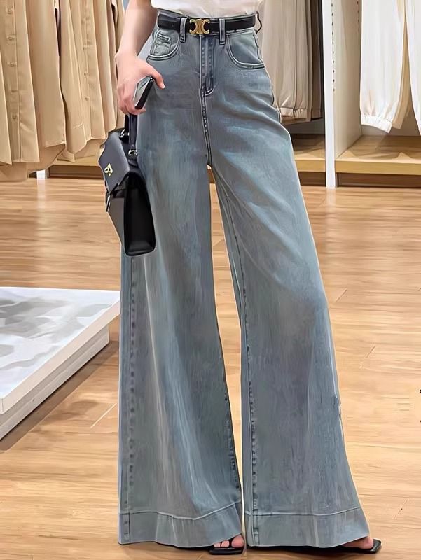 빈티지 세탁 데님 넓은 다리 바지 여성 봄과 여름 2024 새로운 플러스 사이즈 높은 허리 느슨한 슬림 핏 바지스토어 가기