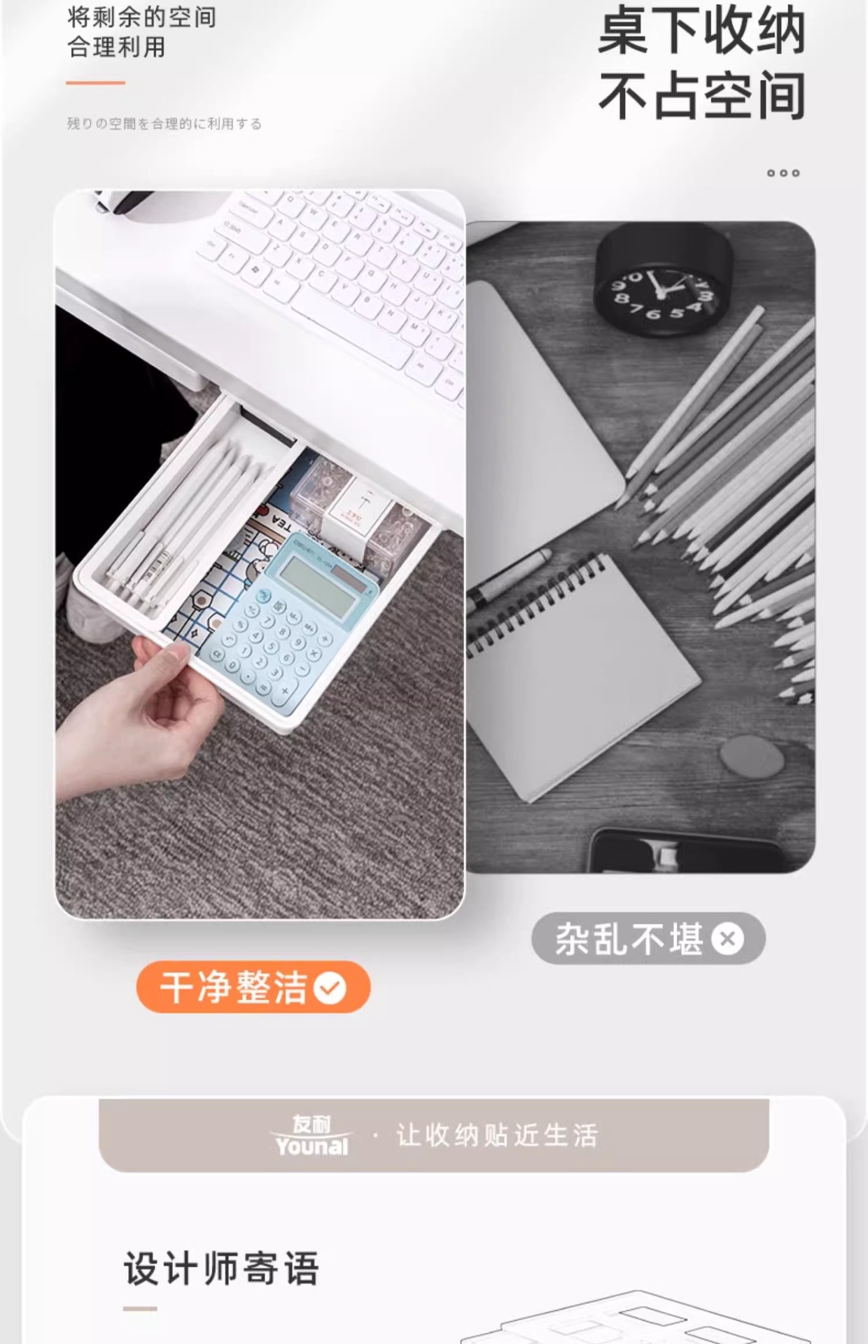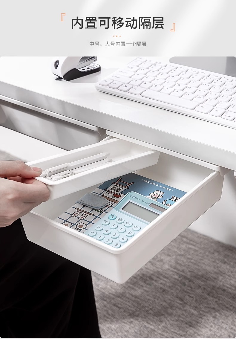 숨겨진 언더 데스크 보이지 않는 스토리지 박스 서랍 유형 데스크톱 문구 잡화 마무리 사무실 책상 하단 랙