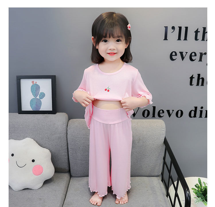 소녀 잠옷 아이스 실크 여름 세트 어린이 새 아기 소녀 얇은 홈 옷 어린이 에어컨 세트스토어 가기