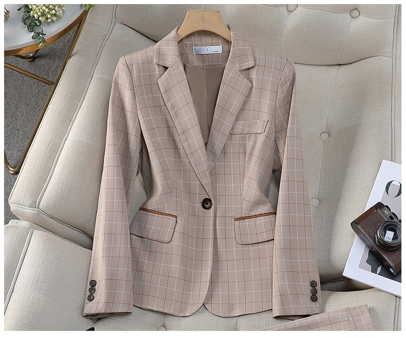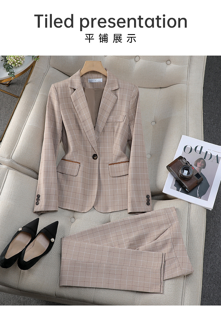 패션 투피스 세트 세트 여성의 2024 봄 새로운 세련된 세련된 우아한 격자 무늬 전문 여성 세트스토어 가기