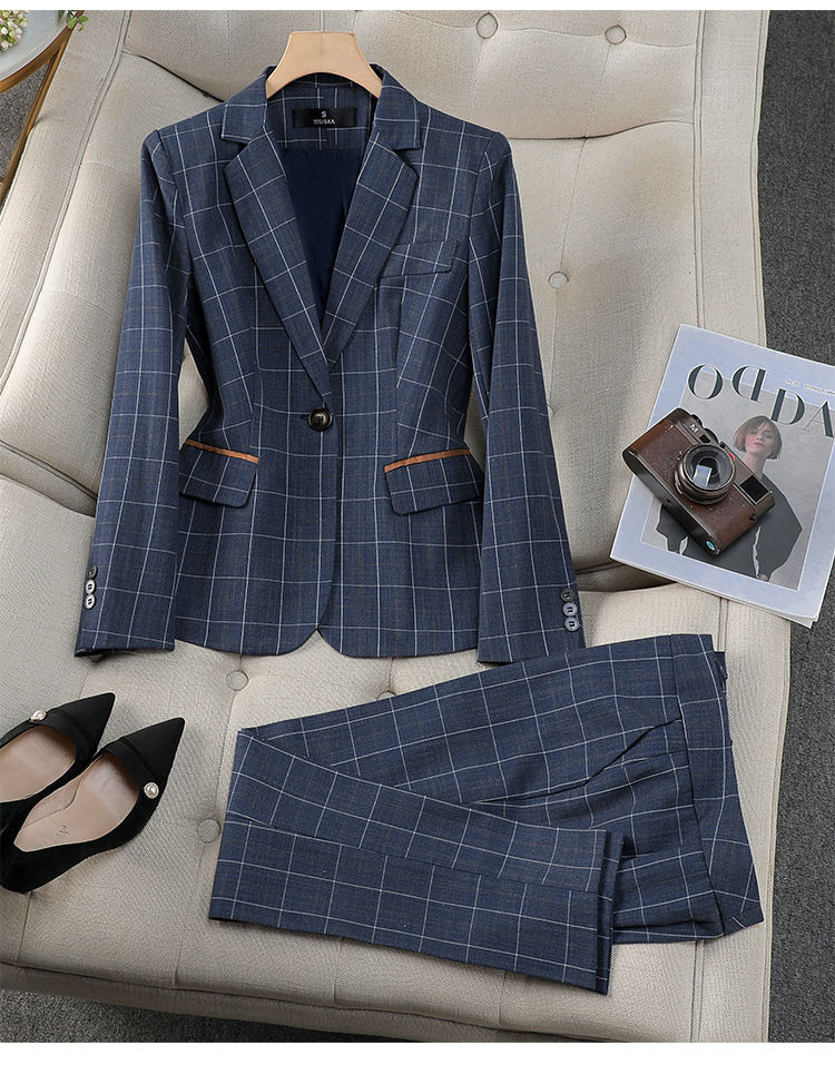 패션 투피스 세트 세트 여성의 2024 봄 새로운 세련된 세련된 우아한 격자 무늬 전문 여성 세트