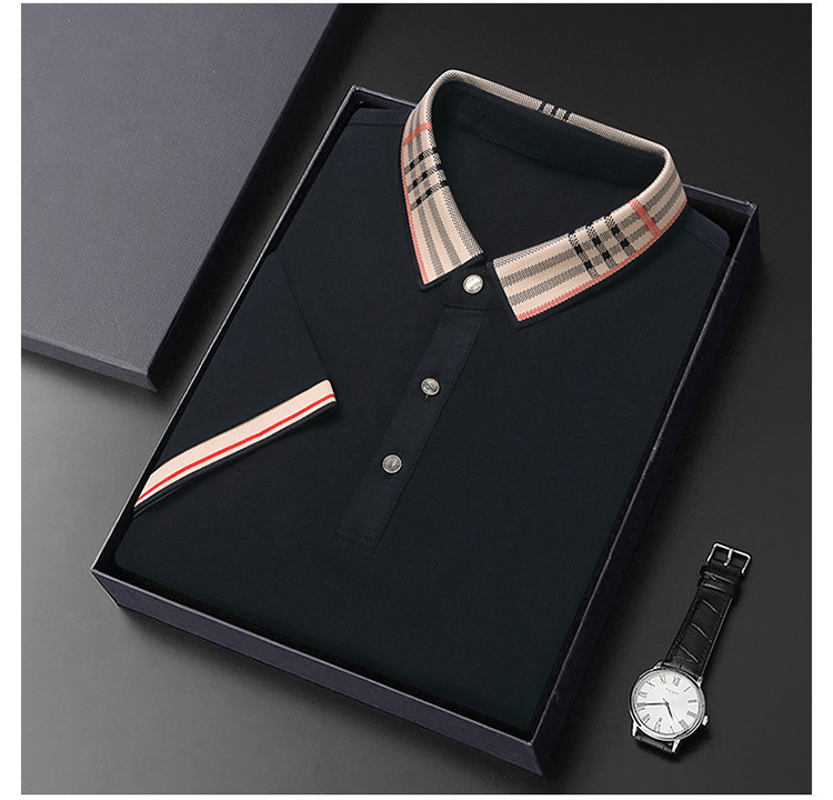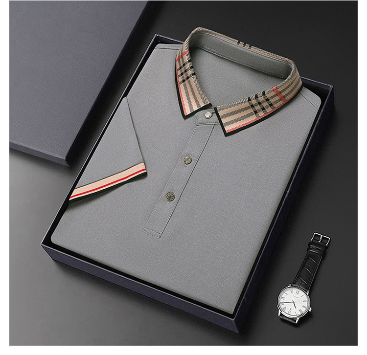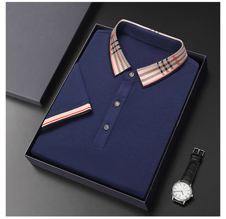 2023 여름 새로운 폴로 남자 짧은 소매 새로운 옷깃 단색 짧은 소매 티셔츠 비즈니스 캐주얼 플러스 사이즈 남성 의류스토어 가기