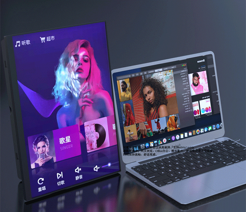 16 인치 144HZ 높은 브러시 휴대용 디스플레이 2.5K 해상도 컴퓨터 서브 스크린 확장 분할 화면 XSS/PS5 프로젝션 화면