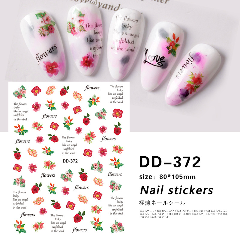Redanco 새로운 3D 그물 붉은 폭발 작은 야생 꽃 네일 아트 스티커 접착 네일 스티커 보석 도매 DD-353스토어 가기