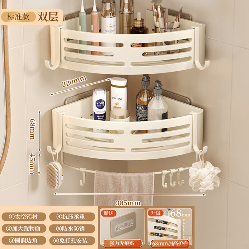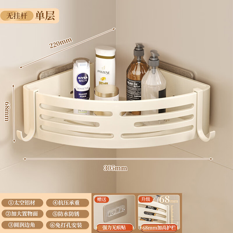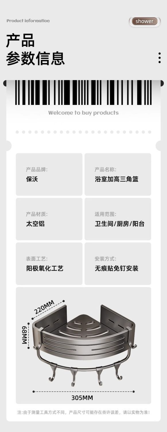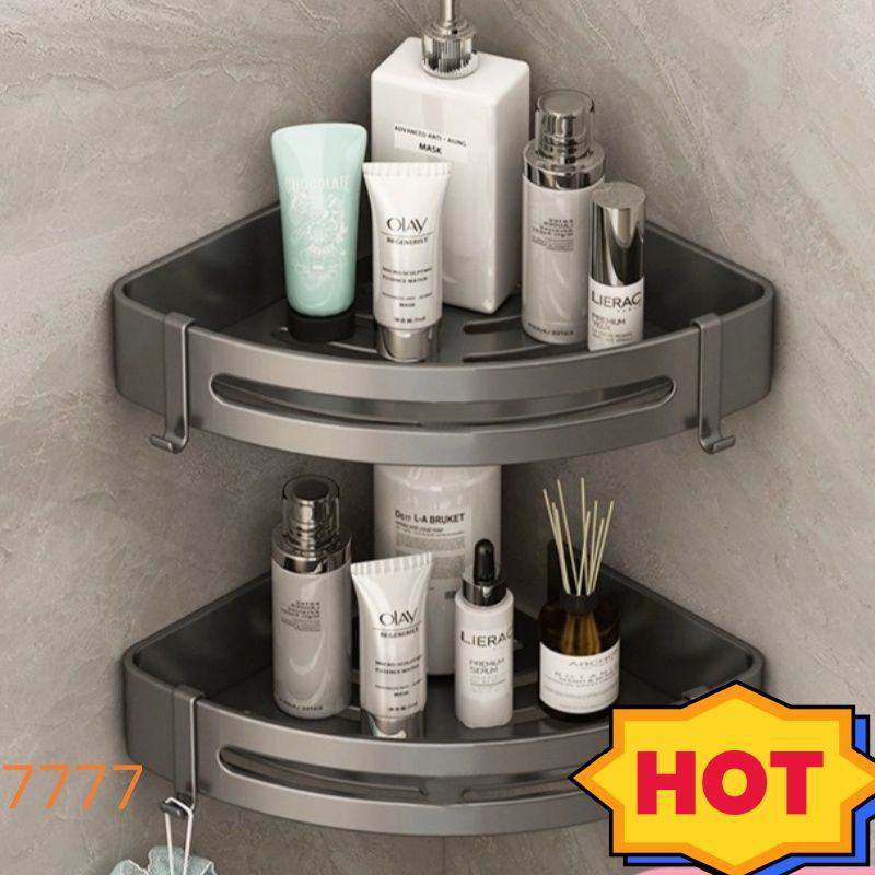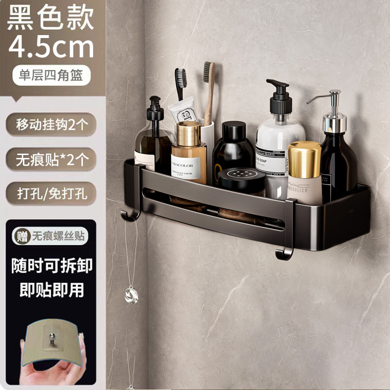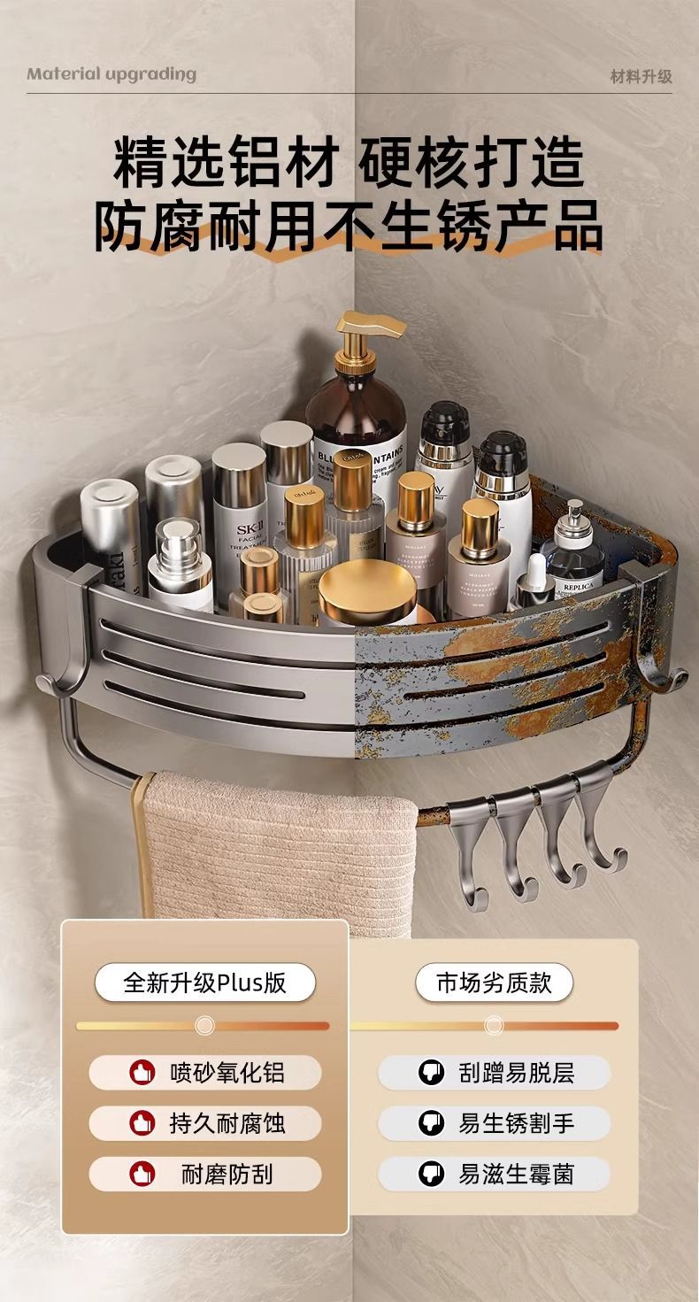 건그레이 색상의 무타공 삼각형 바스켓 부착형 욕실 수납 선반, 욕실 코너 선반, 샤워젤 벽걸이 코너 선반, 벽걸이형 코너 선반스토어 가기