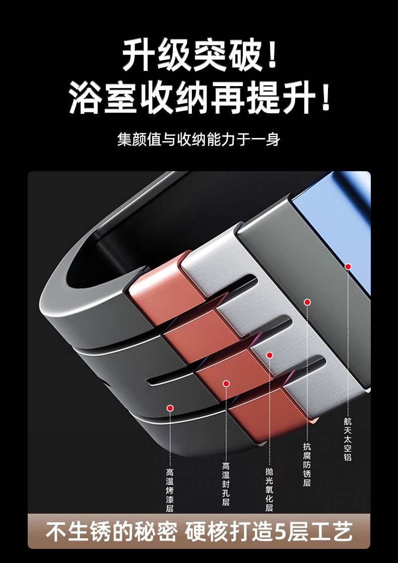 • 블랙 - 6.8CM 스페이스 알루미늄 - 2단 (무흔 접착)