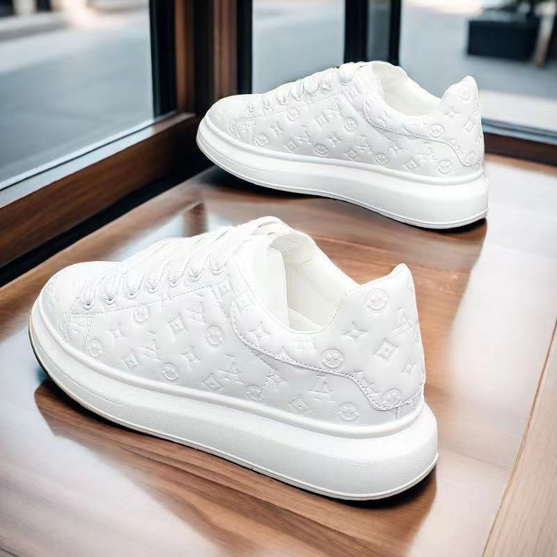 트렌디 한 인쇄 된 흰색 신발 남성과 여성의 2024 새로운 두꺼운 밑창 커플 로우 탑 보드 신발 경량 캐주얼 운동화 TikTok스토어 가기