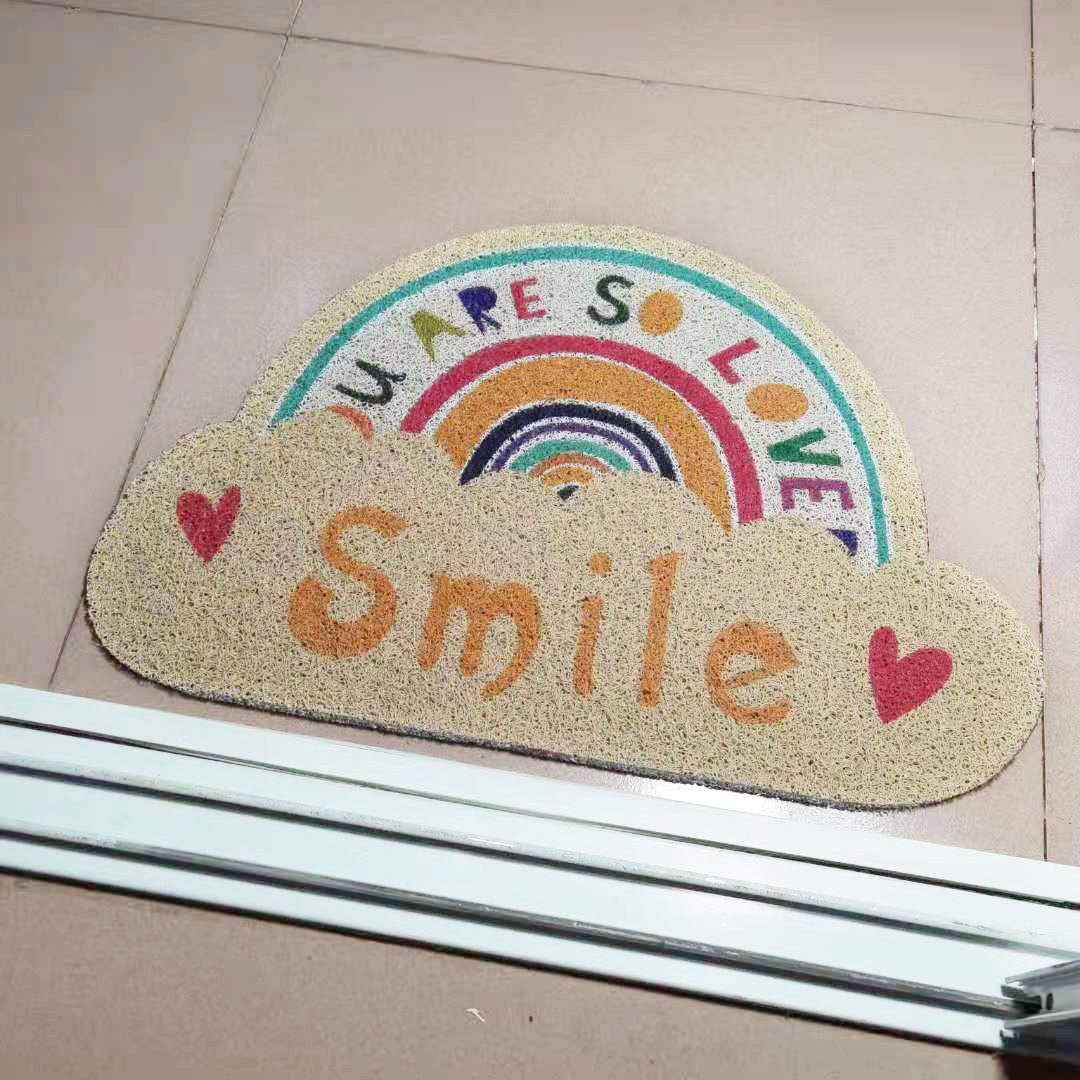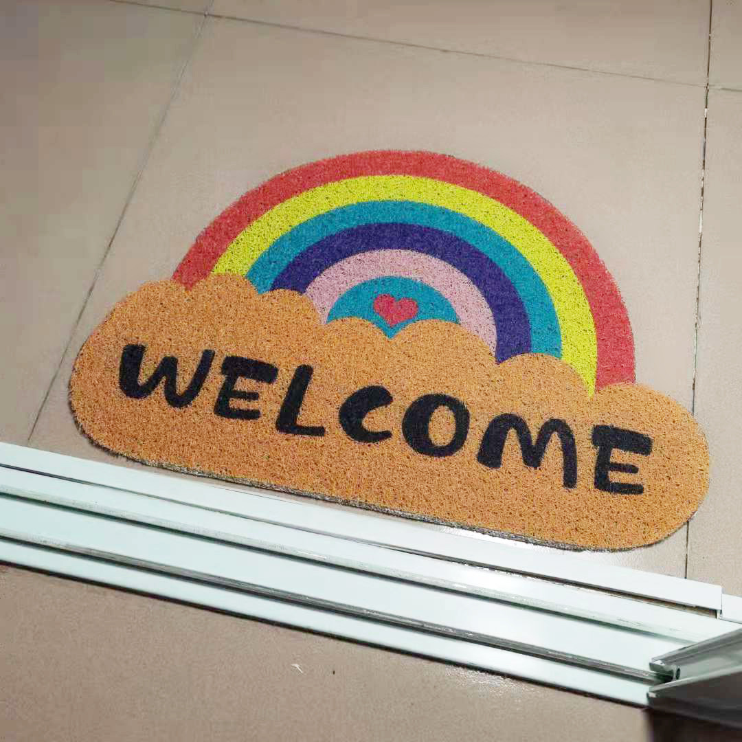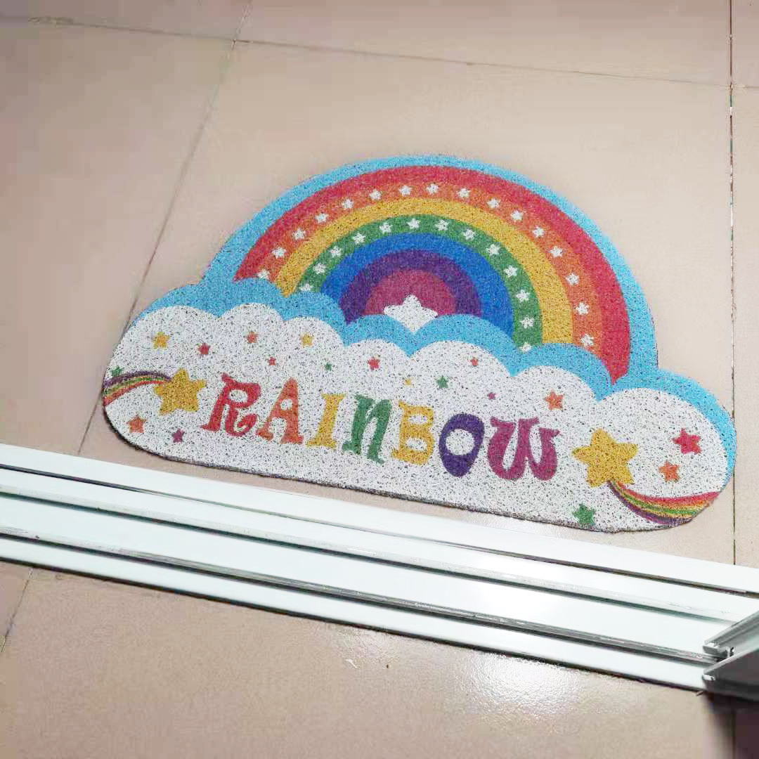 도어 두꺼운 실크 루프 바닥 매트 매트 PVC 입구 발 매트 방진 및 모래 제거 무지개 인쇄 도어 매트