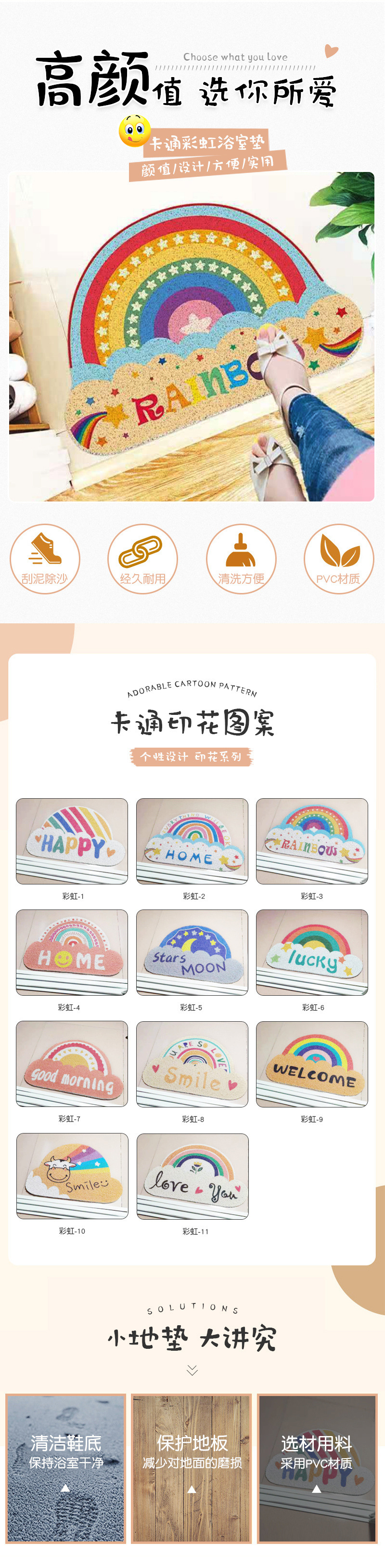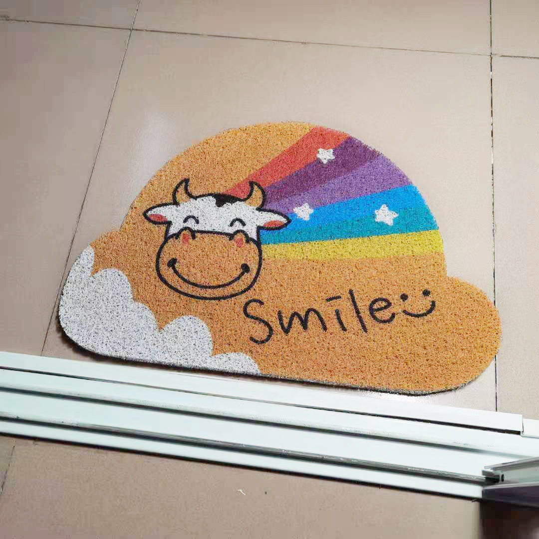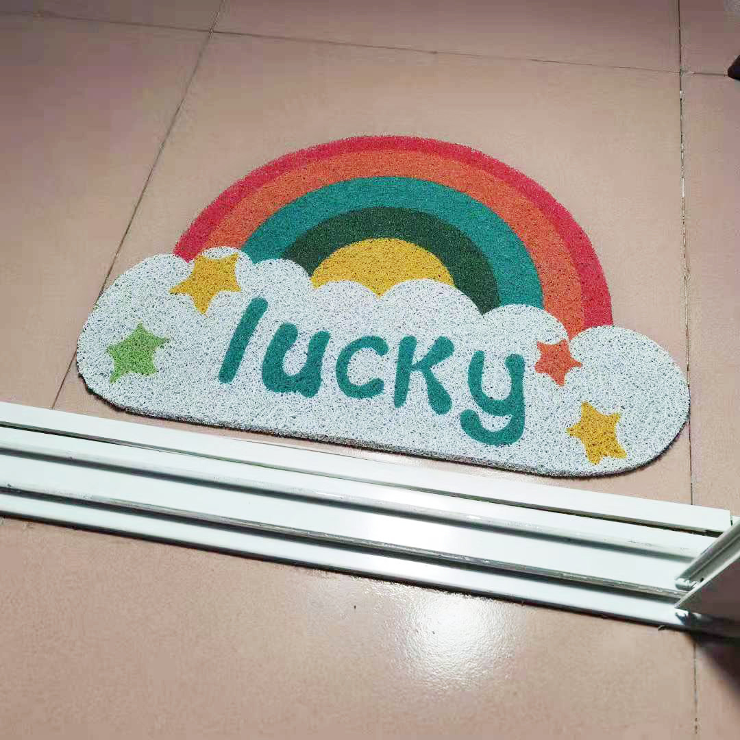 도어 두꺼운 실크 루프 바닥 매트 매트 PVC 입구 발 매트 방진 및 모래 제거 무지개 인쇄 도어 매트