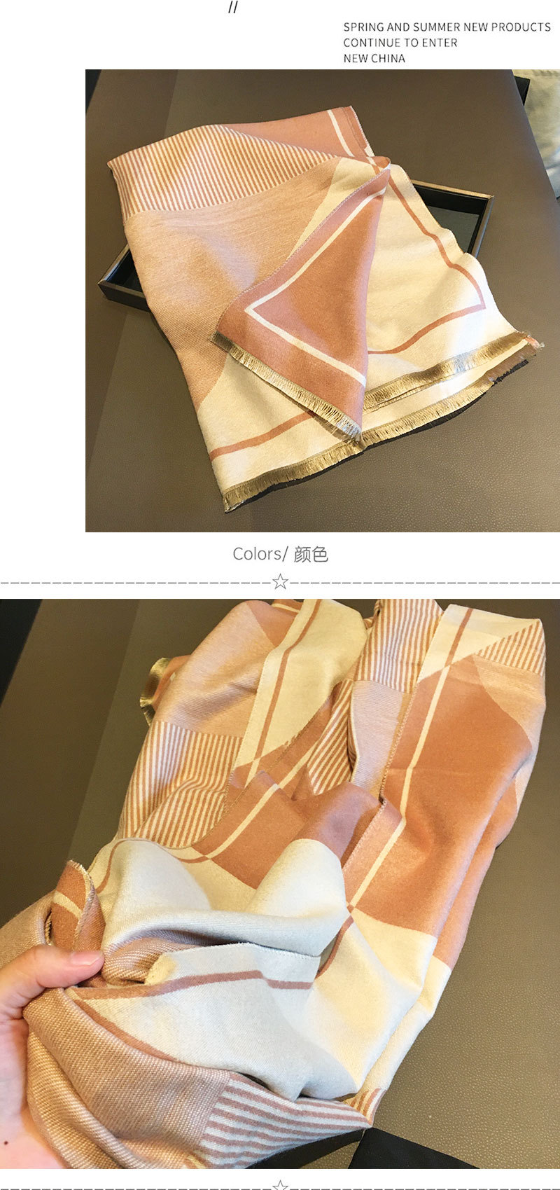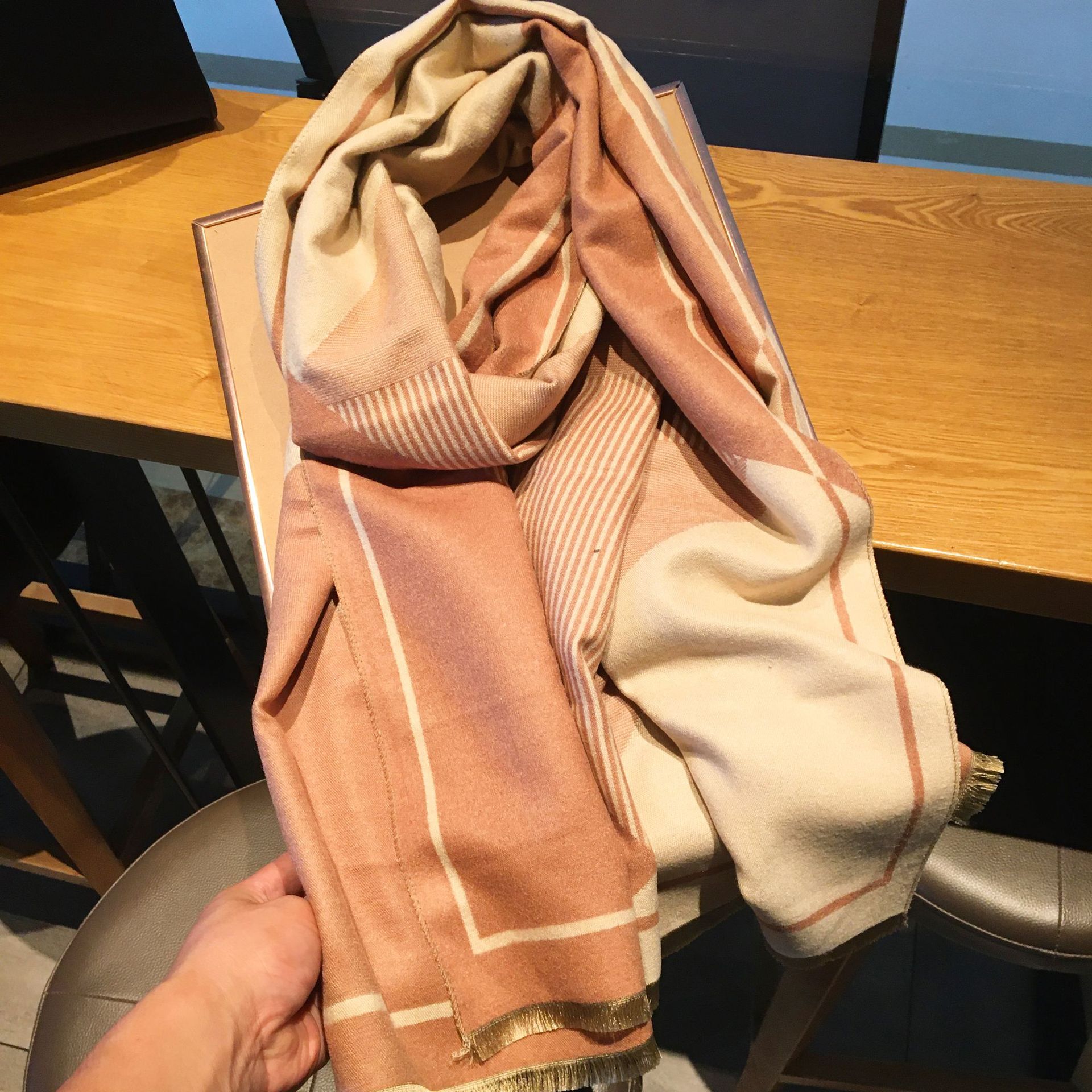 새로운 2024 한국 스타일 기하학적 줄무늬 스카프 여성의 겨울 따뜻한 두꺼운 이중 사용 학생 캐시미어 스카프