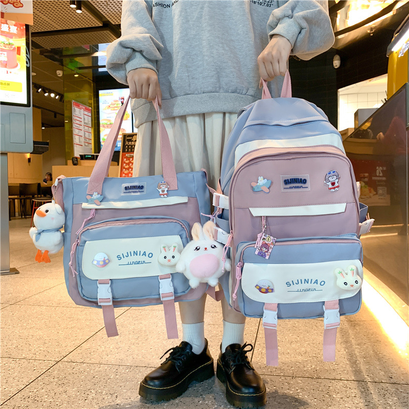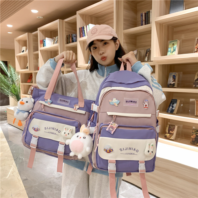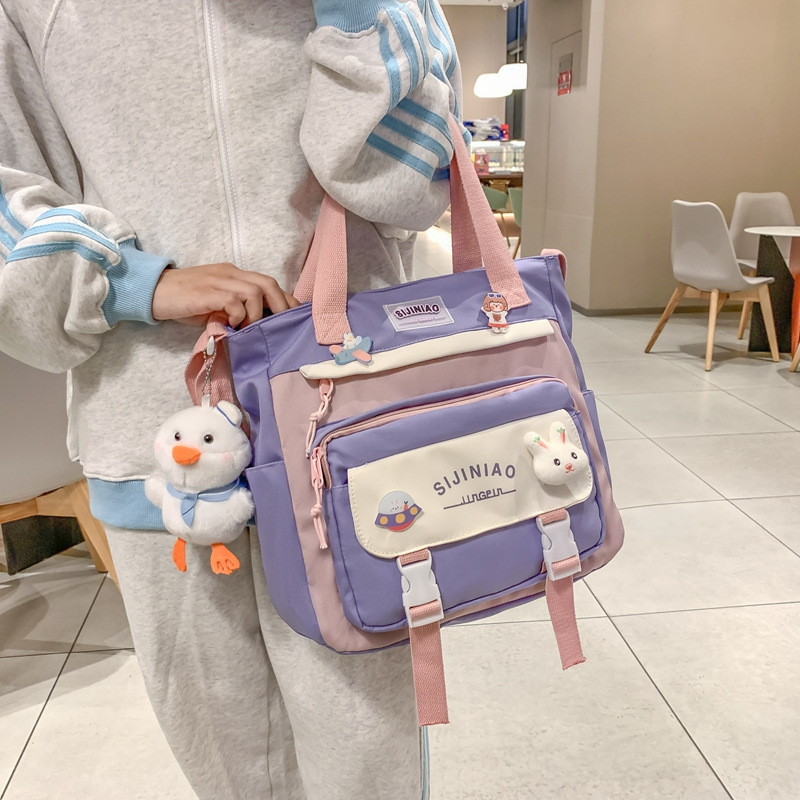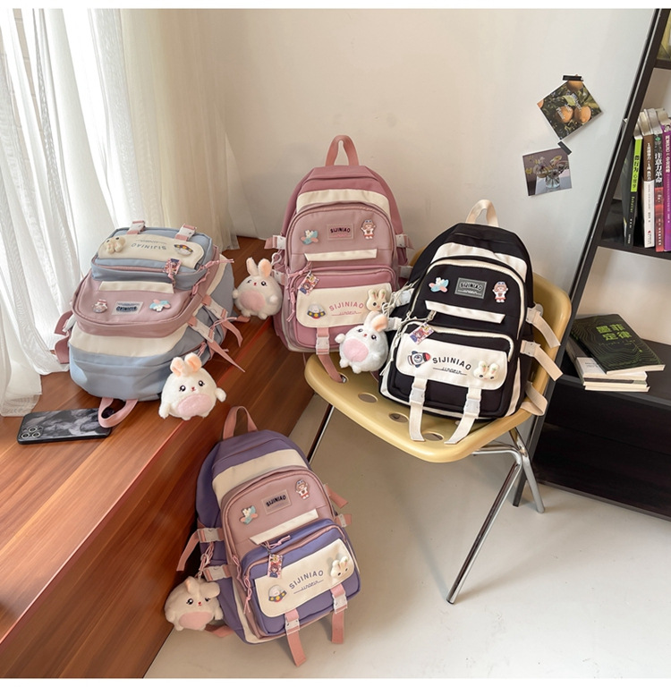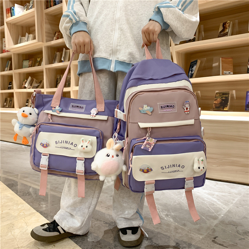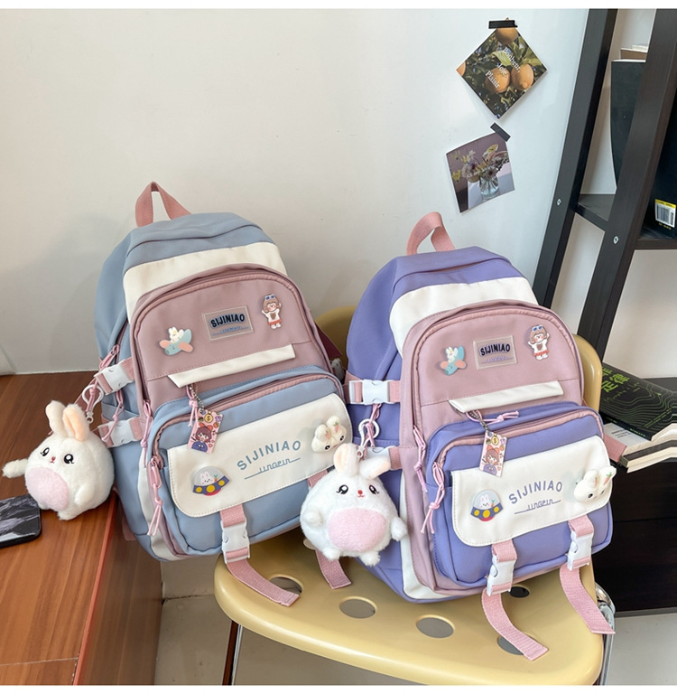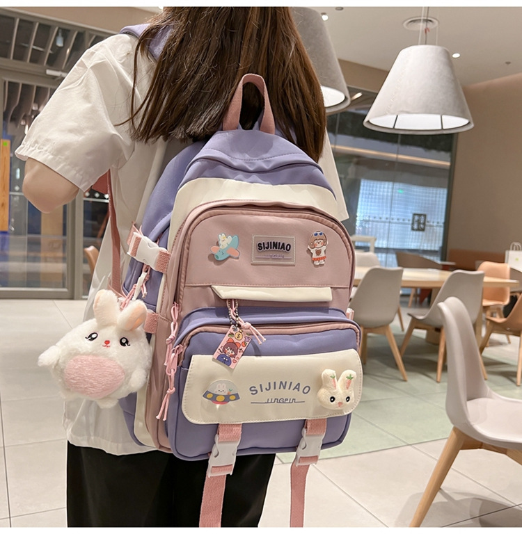 • 보라색 대형 [배낭] + 뚱뚱한 토끼 펜던트 + 뱃지