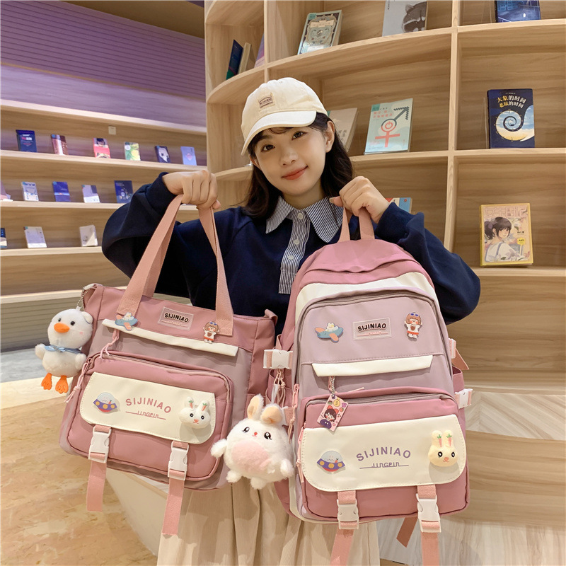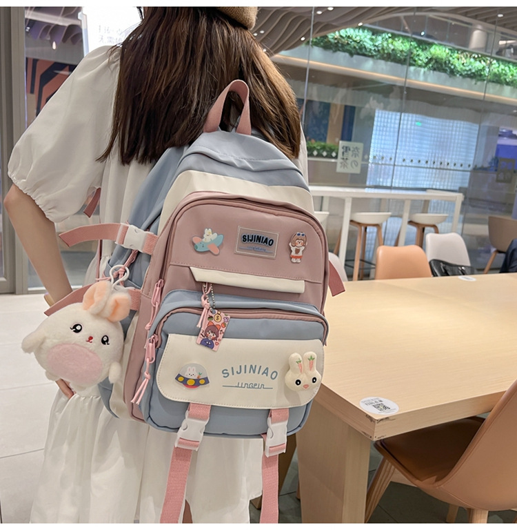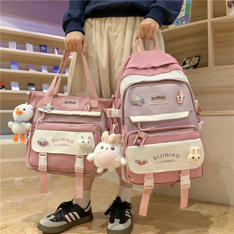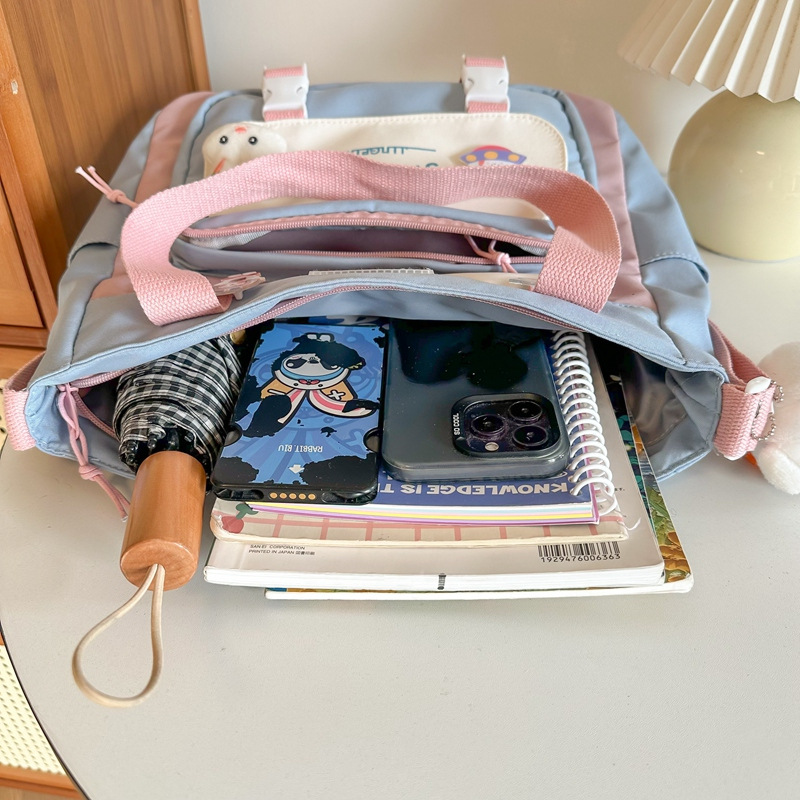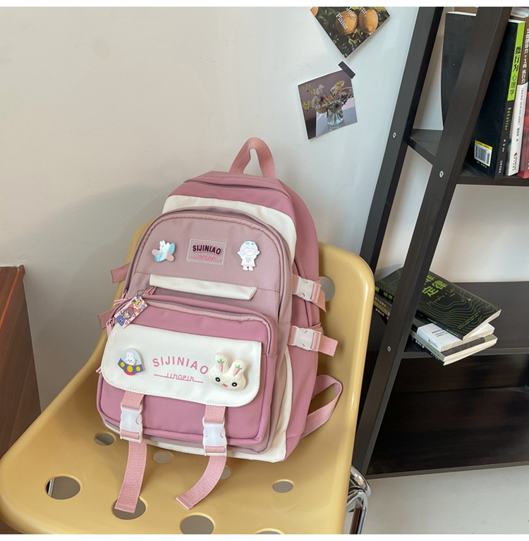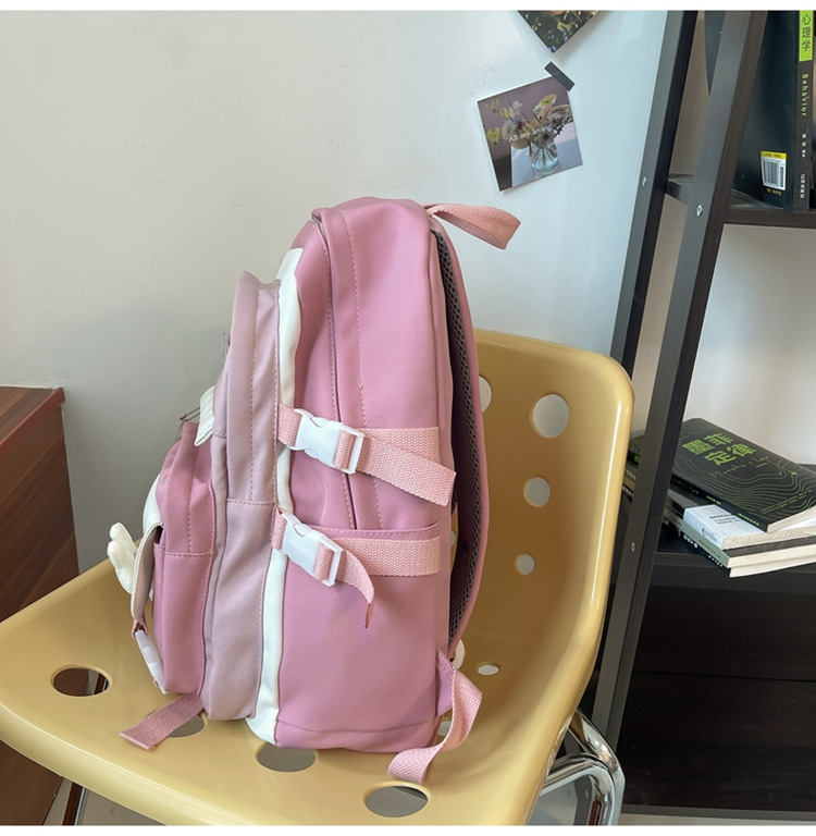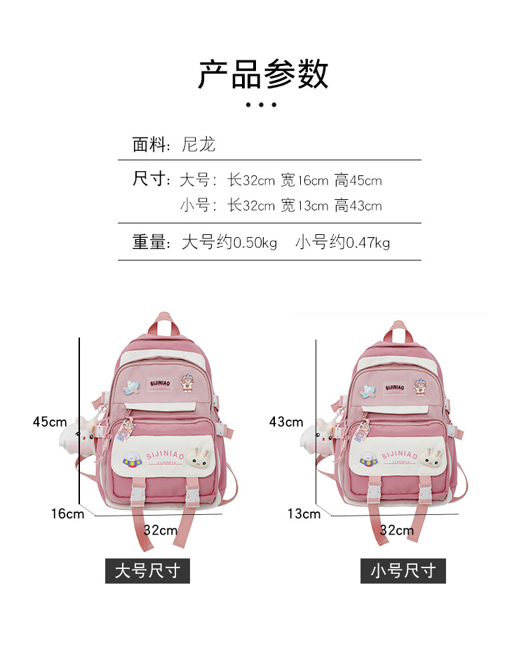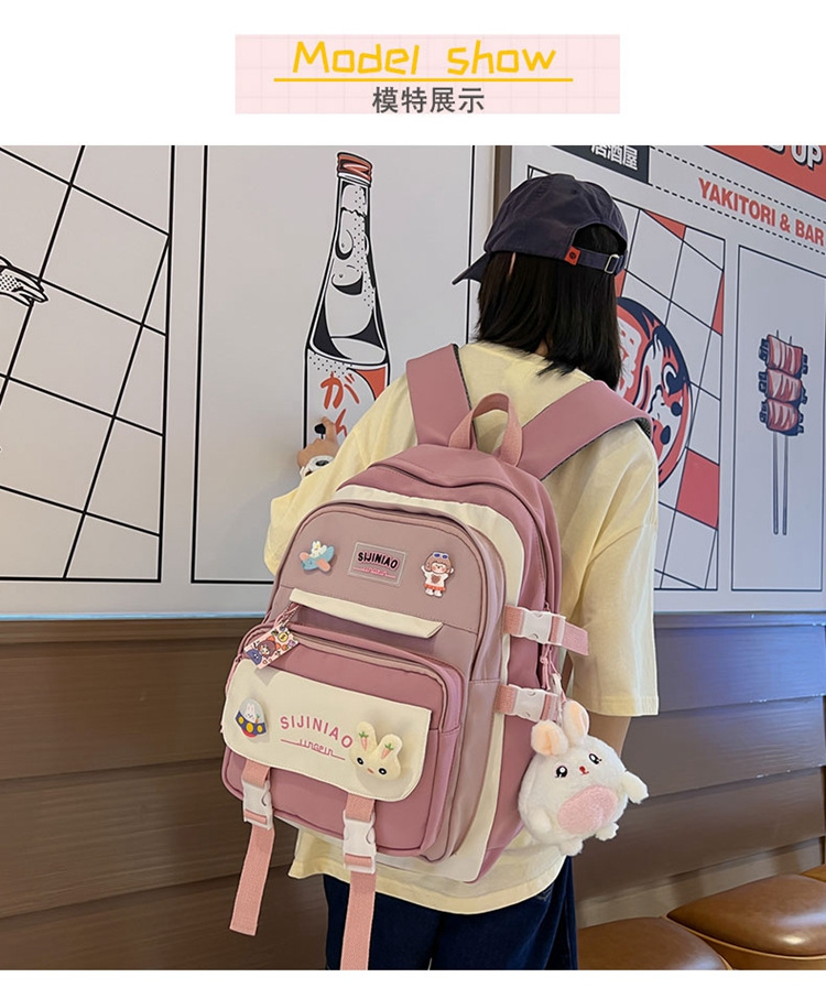 • 핑크 라지 [백팩] + 뚱뚱한 토끼 펜던트 + 뱃지