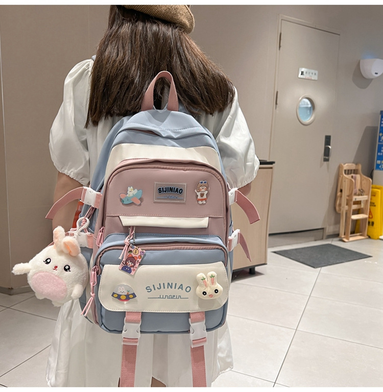 • 블루 스몰 [백팩] + 뚱뚱한 토끼 펜던트 + 뱃지