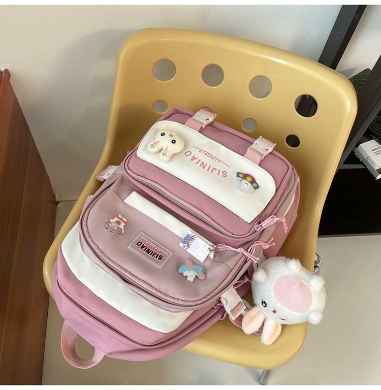 • 보라색 S사이즈[백팩] + 뚱뚱한 토끼 펜던트 + 뱃지