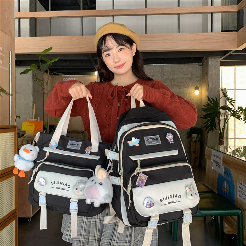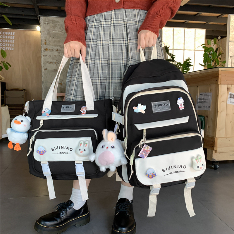 • 블랙 라지 [백팩] + 뚱뚱한 토끼 펜던트 + 뱃지