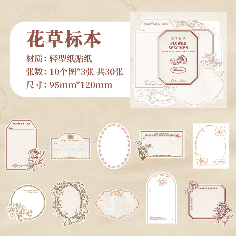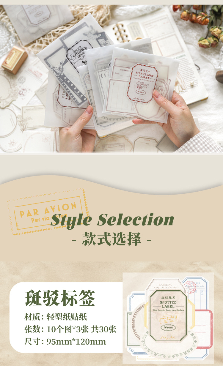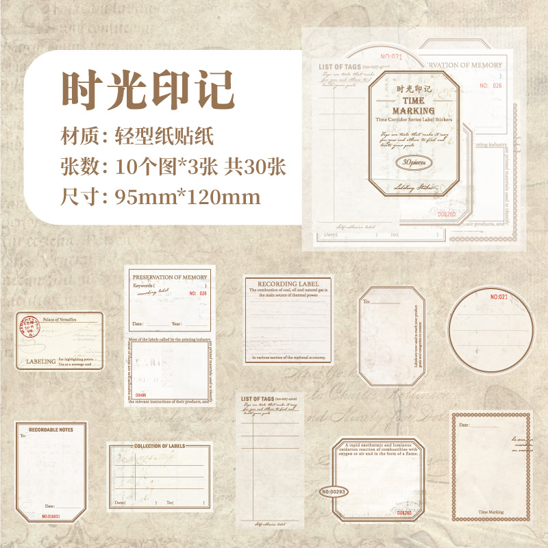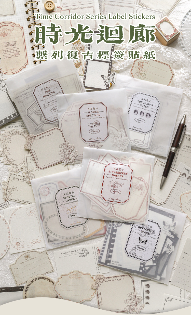 시간 복도 레트로 모양의 라벨 스티커 소금 시리즈 예술적 스티커 손 계정 장식 테두리베이스 소재스토어 가기