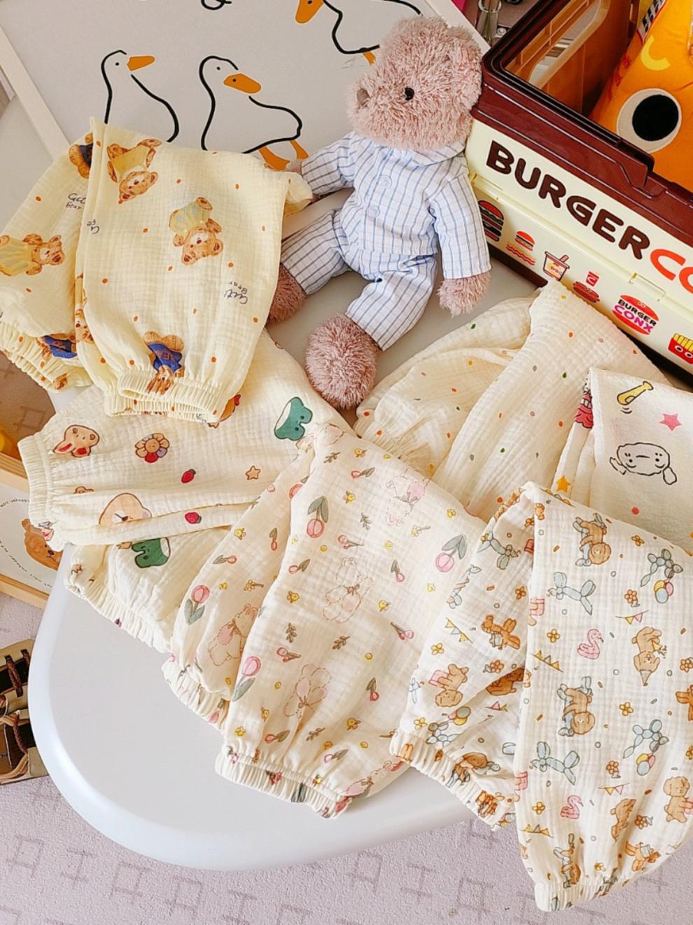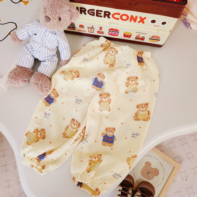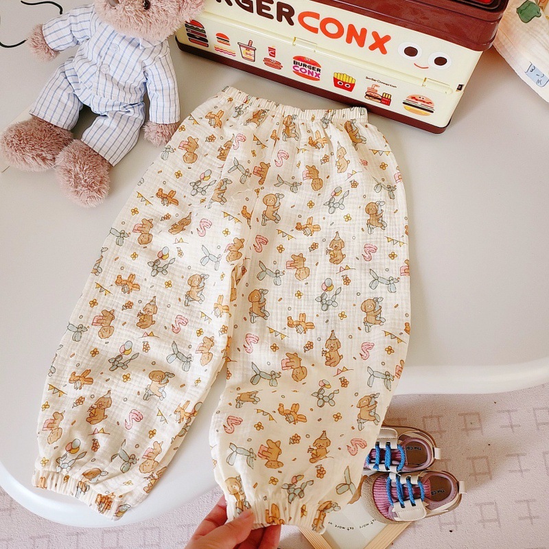 어린이 순면 모기 방지 바지 여름 한국 스타일 더블 레이어 코튼 거즈 만화 소년 소녀 용 에어컨 바지 아기 용 캐주얼 바지