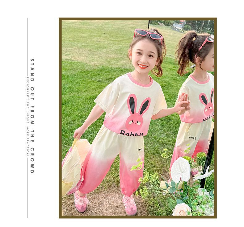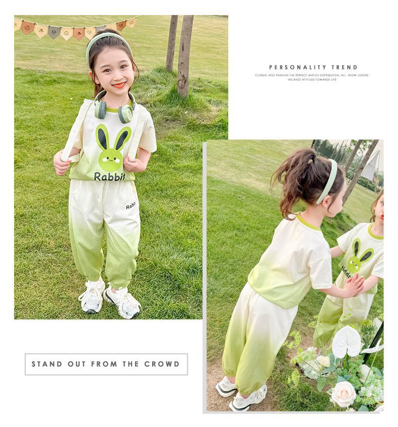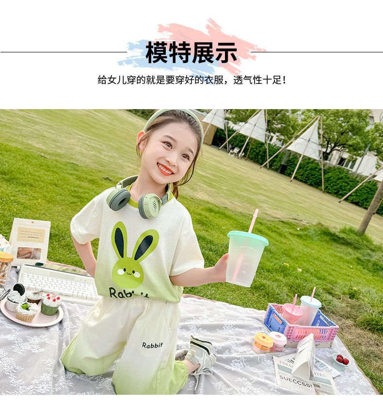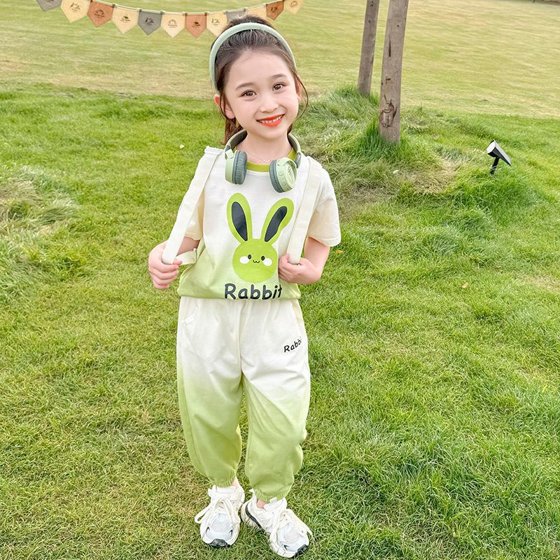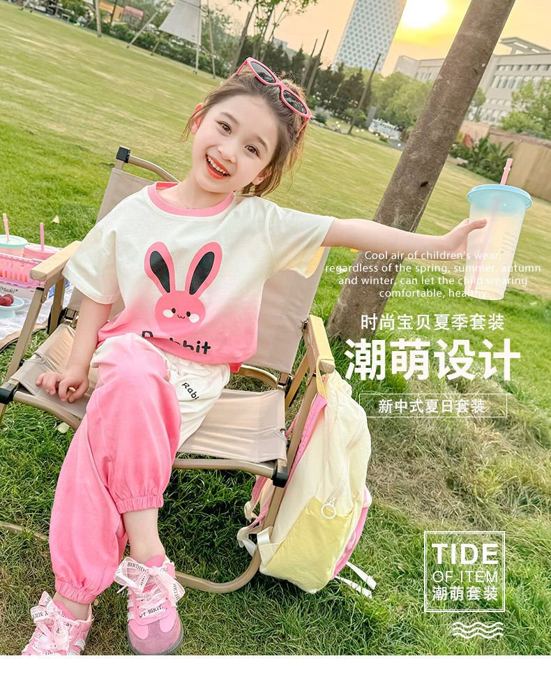여자 유행 세트 2024 새로운 어린이 여름 서양 스타일 귀여운 작은 소녀 아기 캐주얼 귀여운 투피스 세트스토어 가기