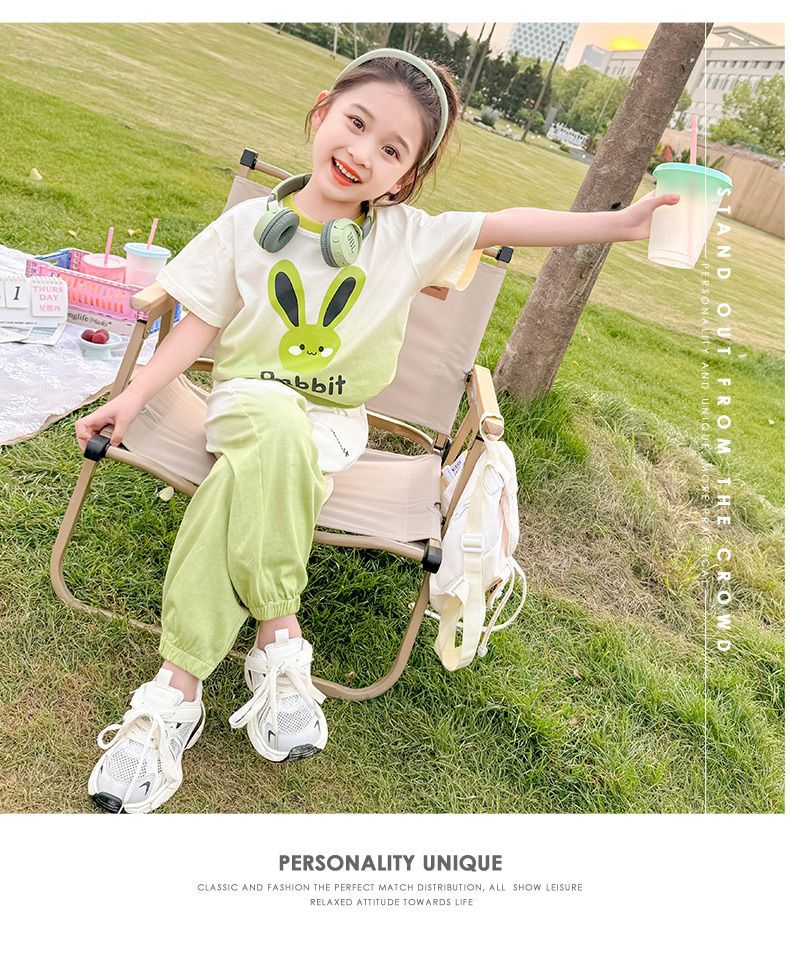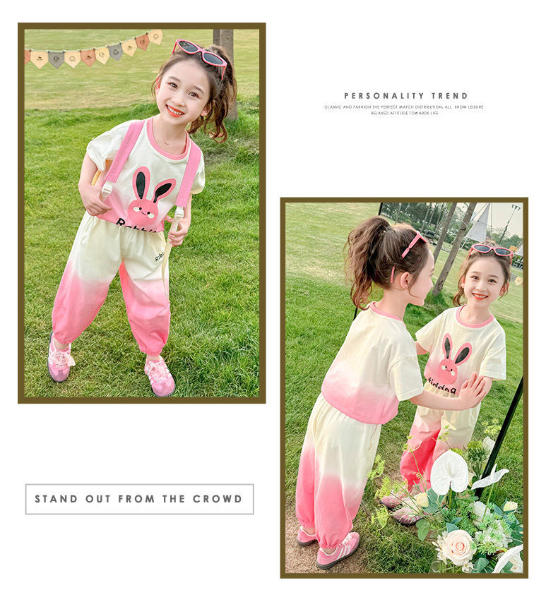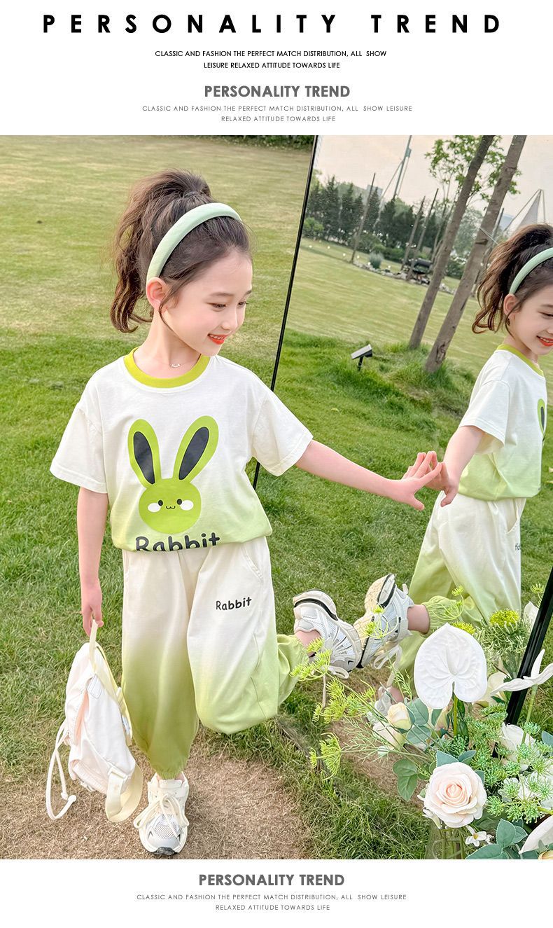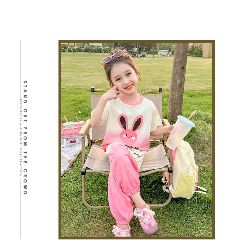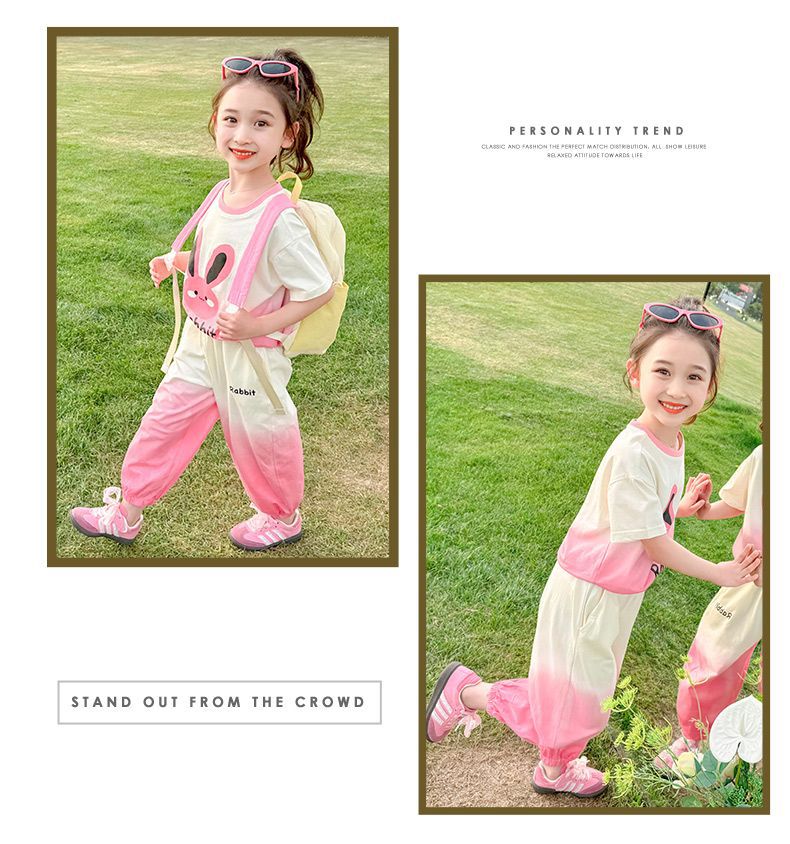 여자 유행 세트 2024 새로운 어린이 여름 서양 스타일 귀여운 작은 소녀 아기 캐주얼 귀여운 투피스 세트스토어 가기