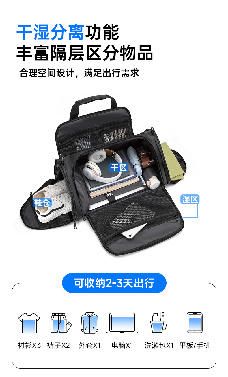 다기능 체육관 가방 독립적 인 신발 빈 배낭 건조하고 젖은 별도의 여행 가방 대용량 고급 스포츠 배낭