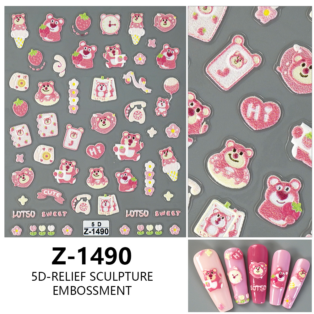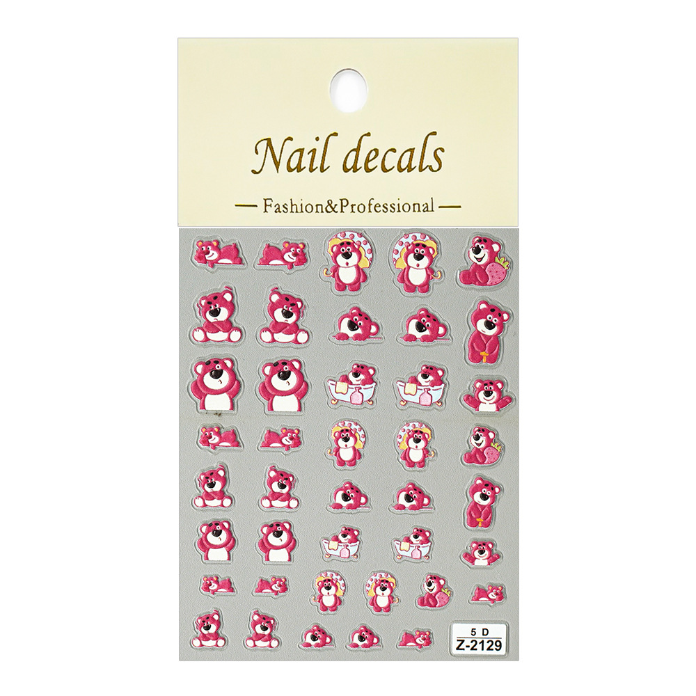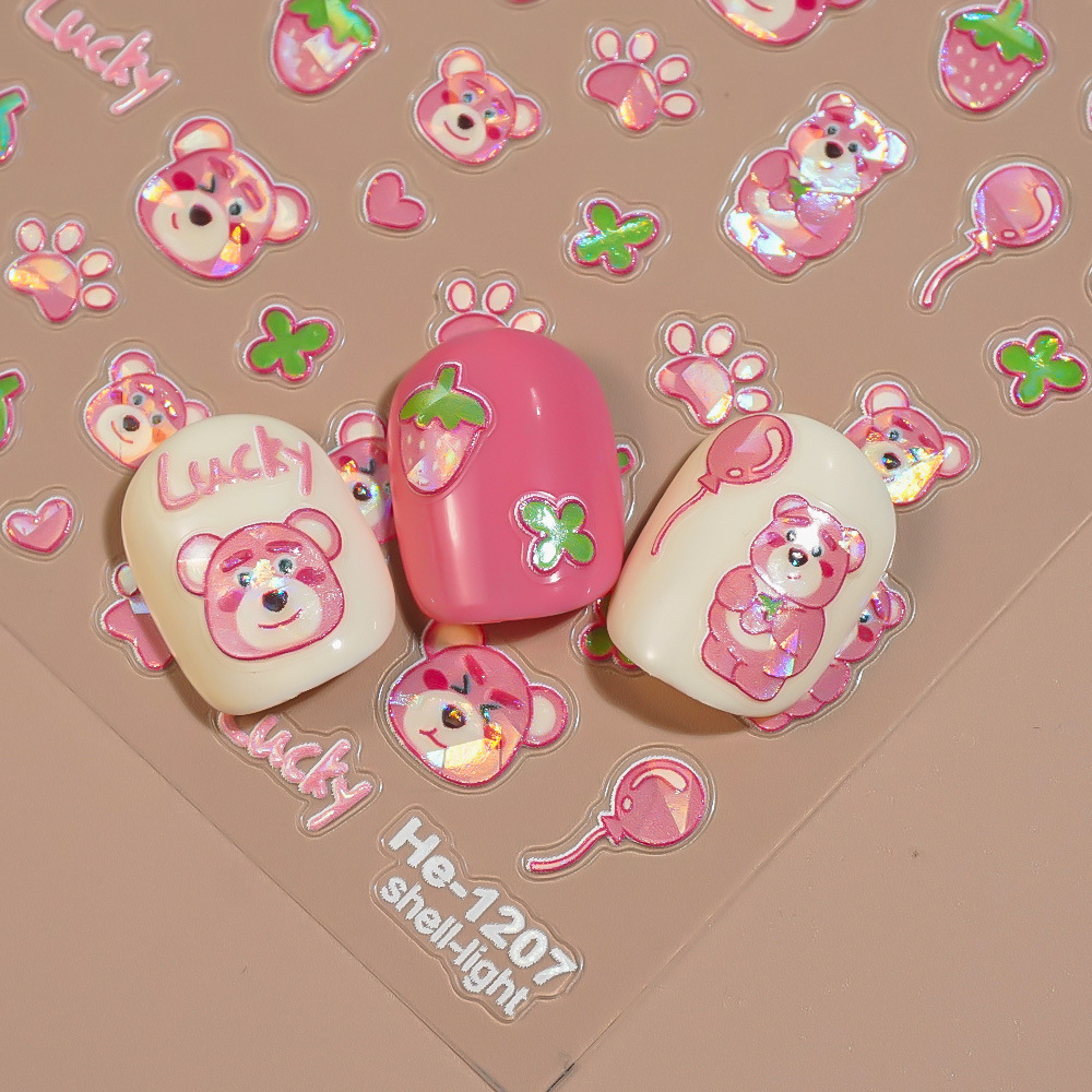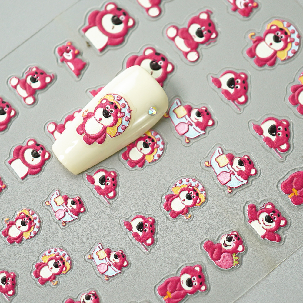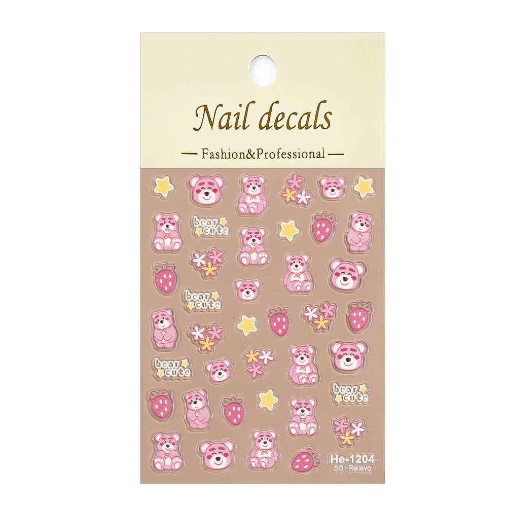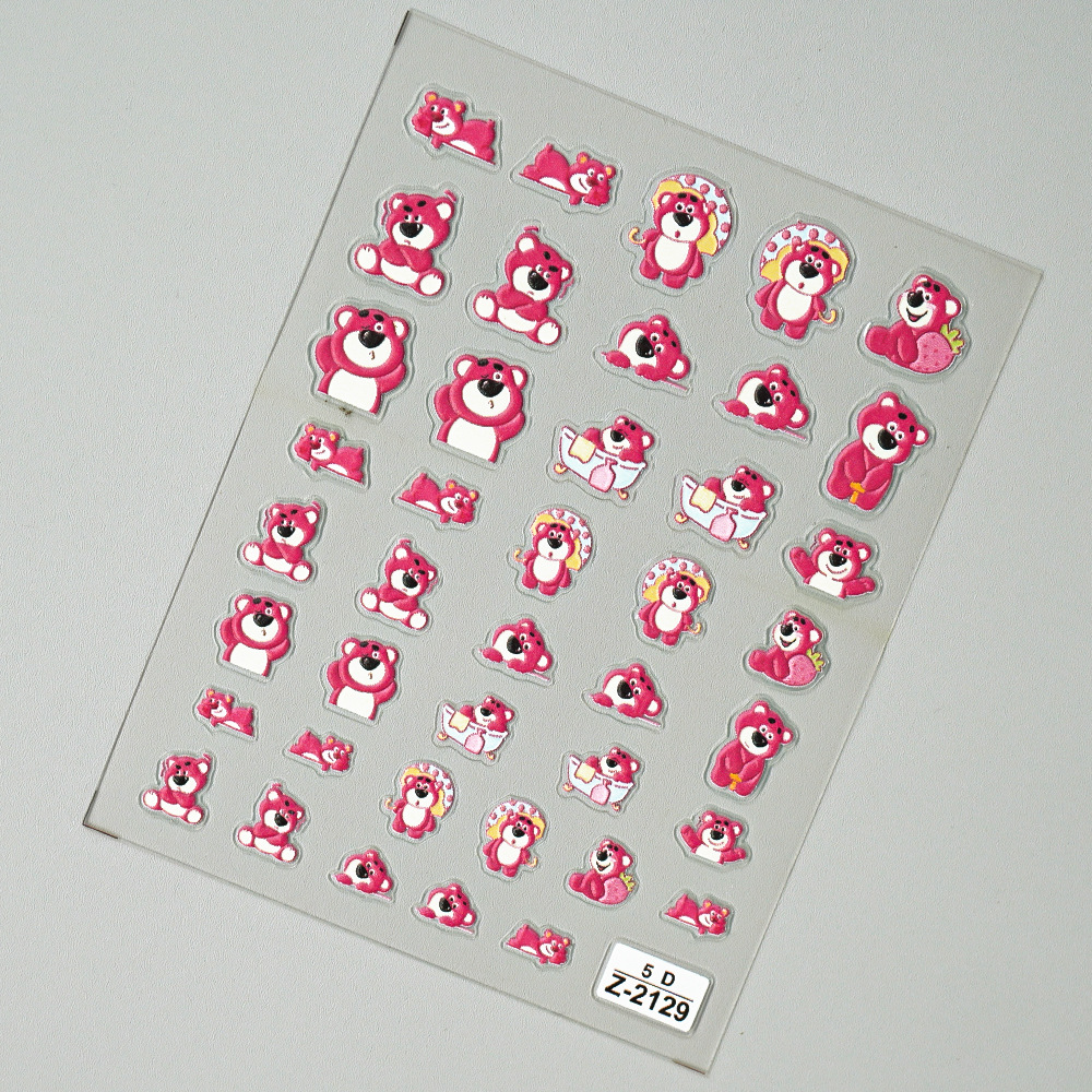 Redanco 새로운 5D 구호 만화 딸기 곰 네일 스티커 3 차원 접착 네일 스티커 도매