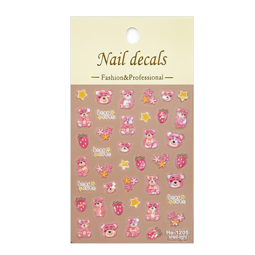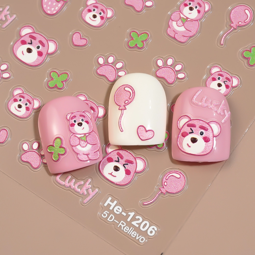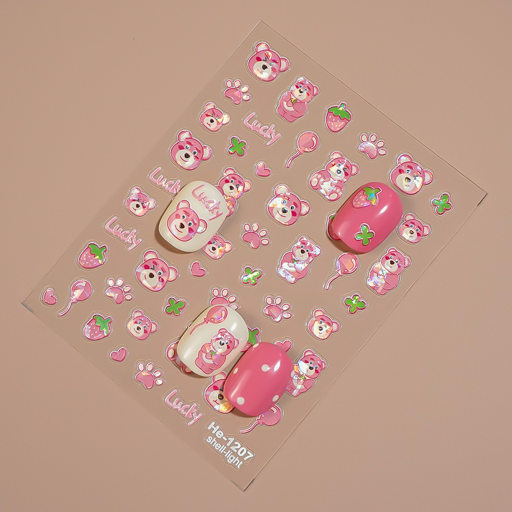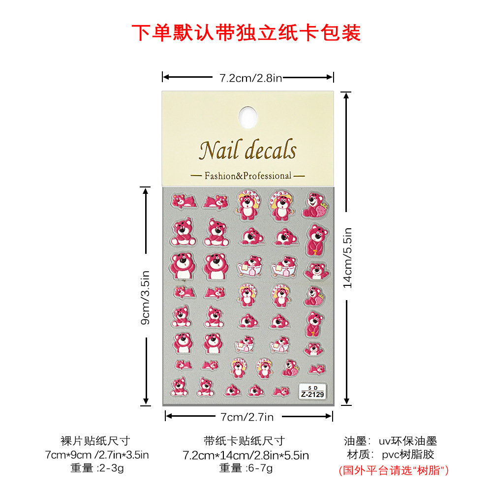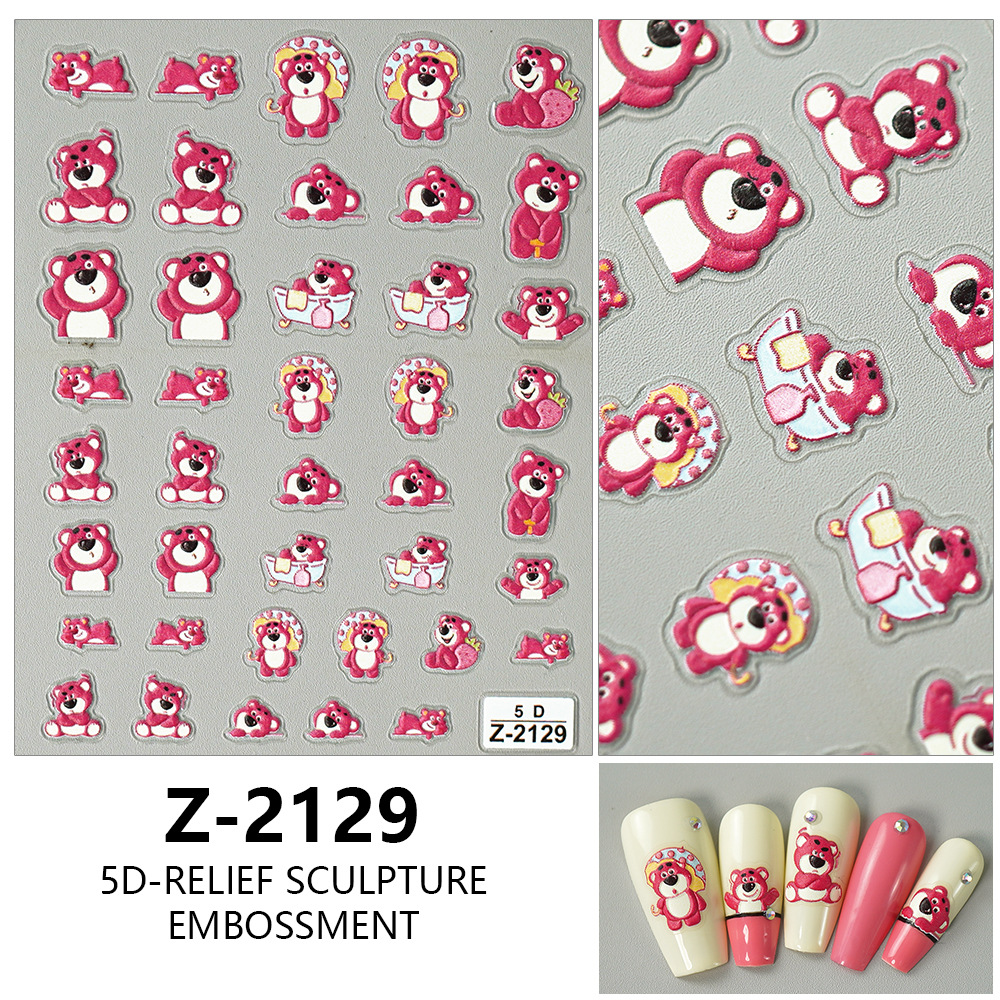 Redanco 새로운 5D 구호 만화 딸기 곰 네일 스티커 3 차원 접착 네일 스티커 도매