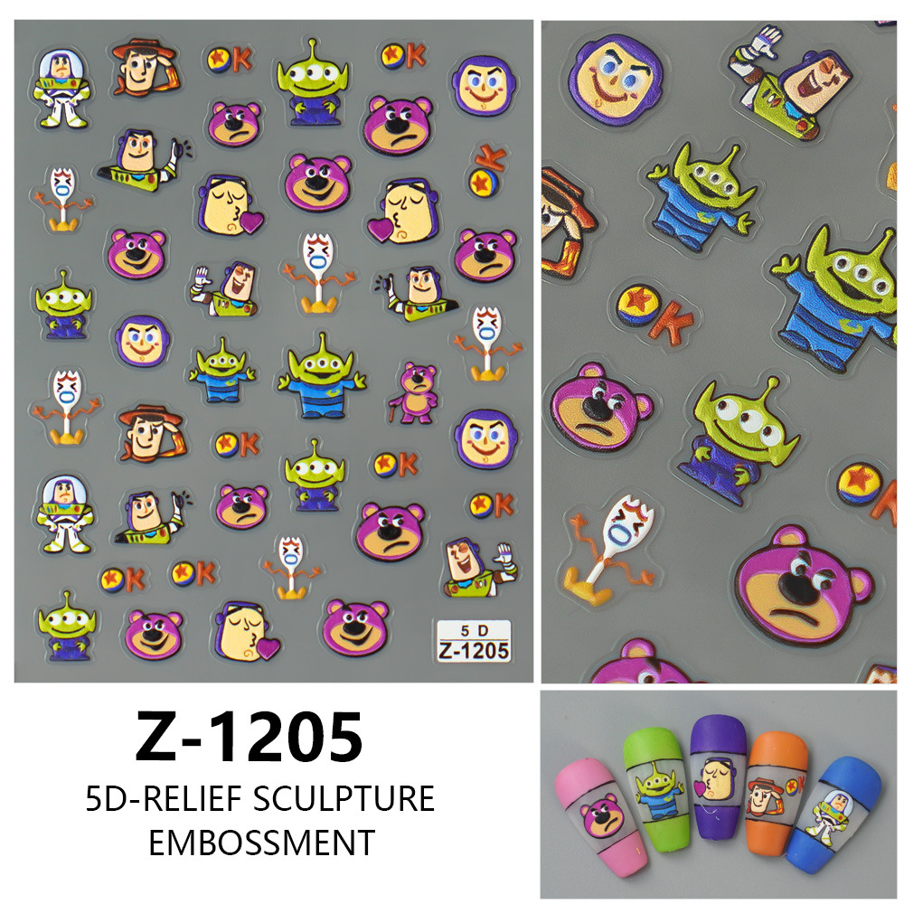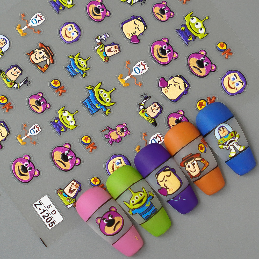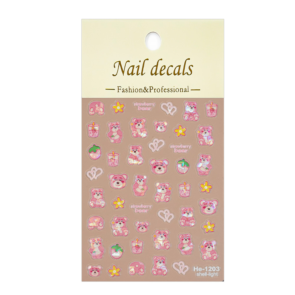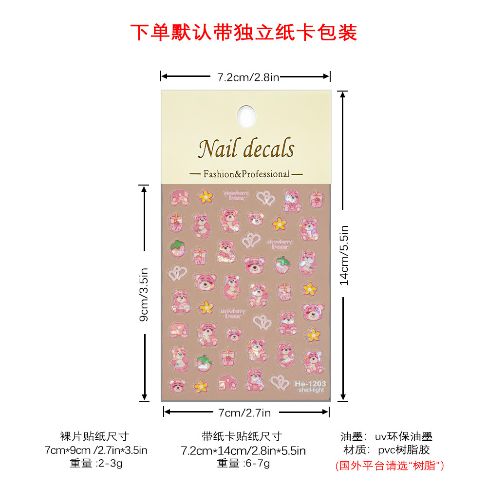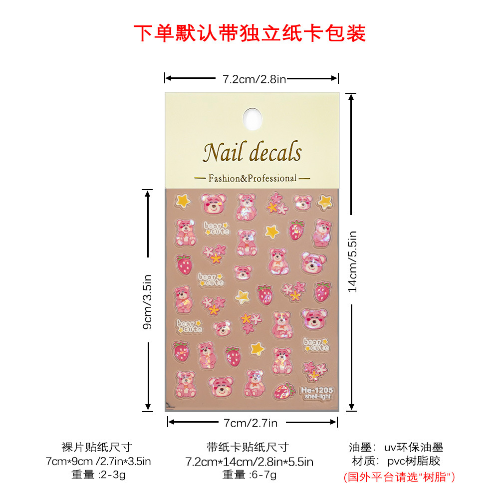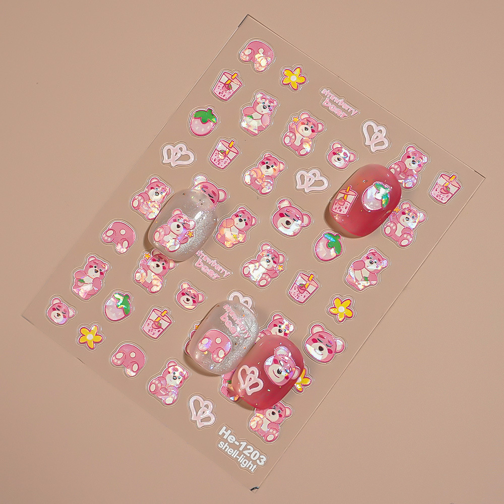 Redanco 새로운 5D 구호 만화 딸기 곰 네일 스티커 3 차원 접착 네일 스티커 도매