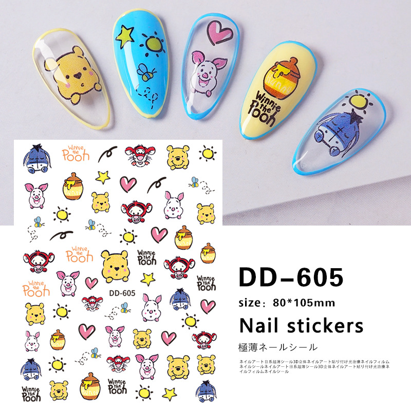 Redanco 새로운 3D 폭발 만화 귀여운 위니 푸우 네일 아트 스티커 접착 네일 스티커 도매