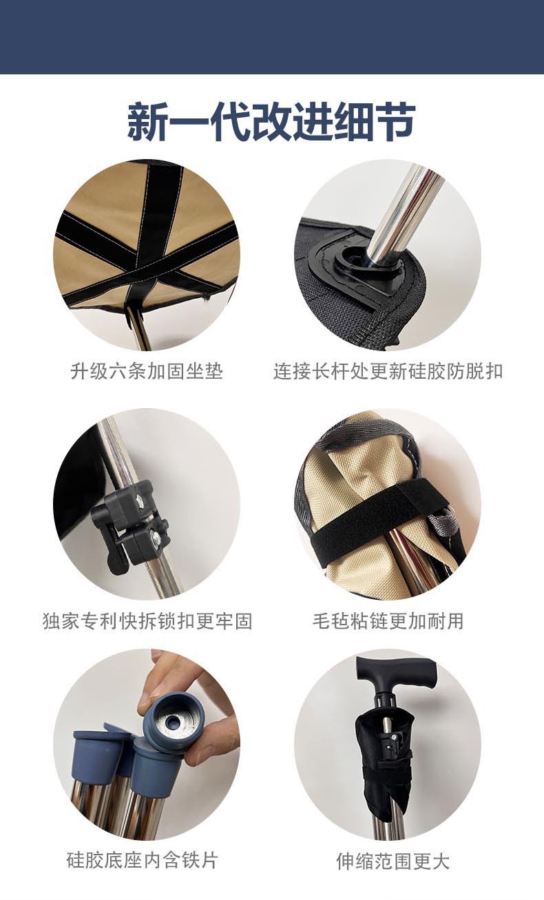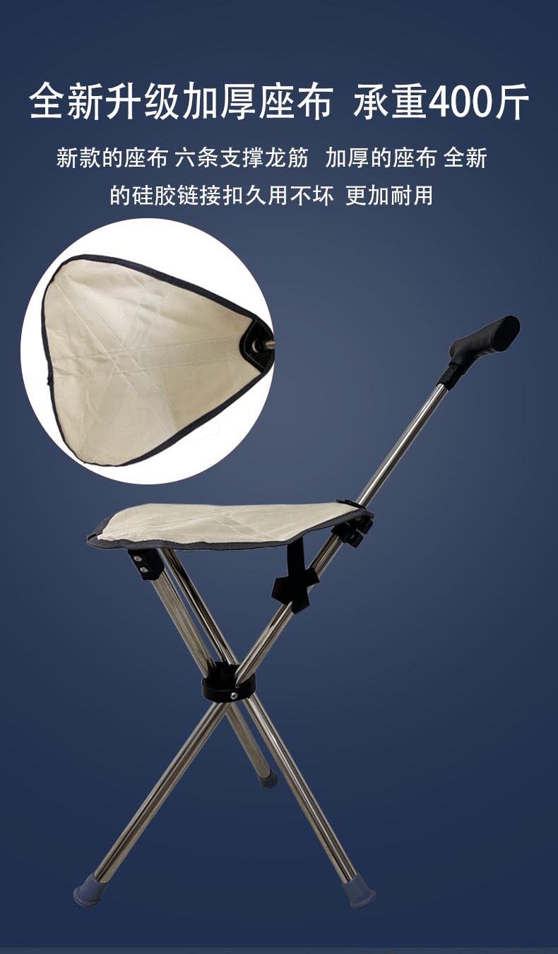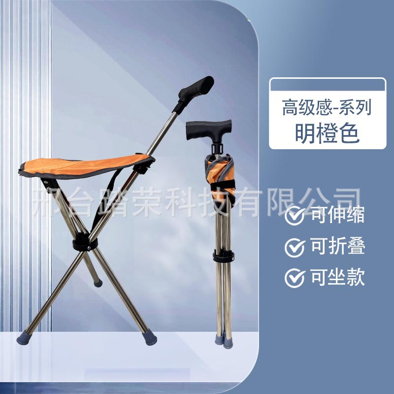 야외 접이식 좌석 도매 다기능 미끄럼 방지 접이식 휴대용 좌석 노인 의자 목발 지팡이스토어 가기