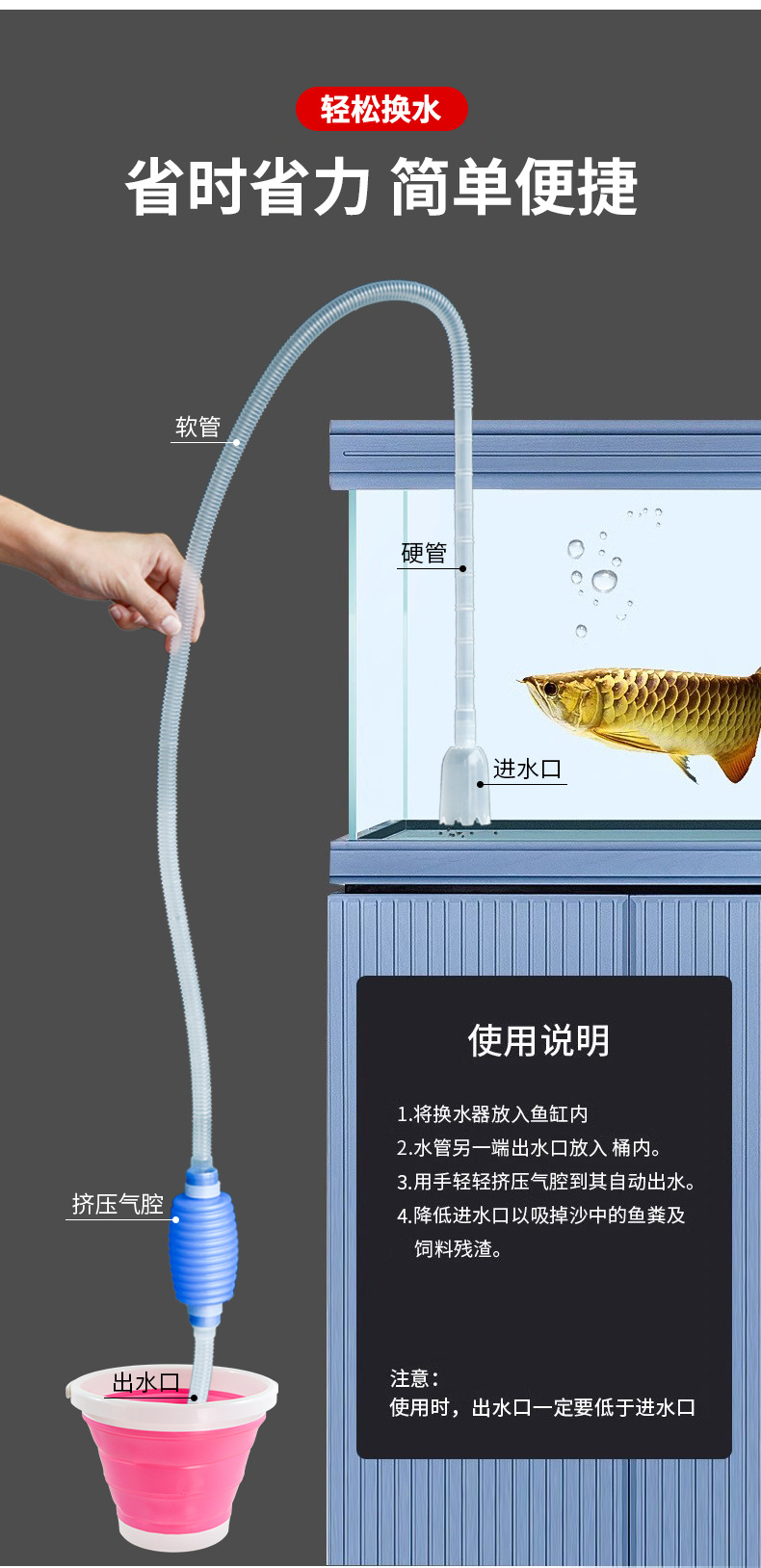 温馨提示:鱼缸换水器有2种吸便口,随机发货,不指定,质量是一样的,介意者慎拍!