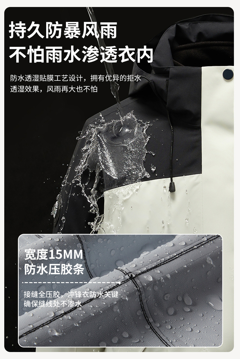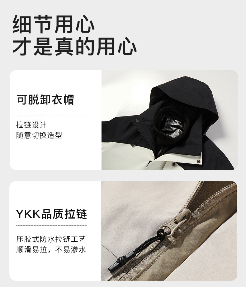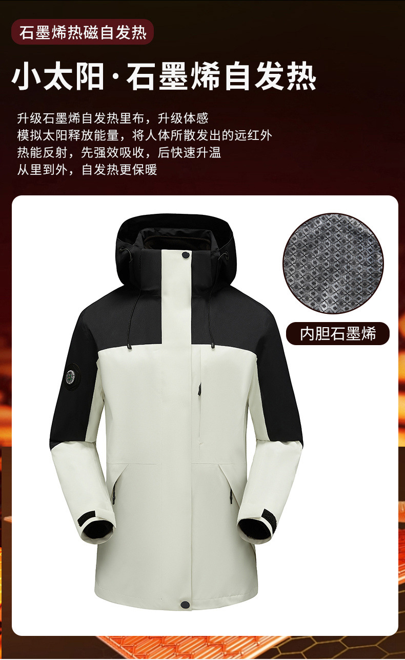 2024년 가을/겨울 모델, 완전 열봉합, 무봉제, 접착식 그래핀 방한 아웃도어 3-in-1 0.05kg 피스 세트 방수 재킷스토어 가기