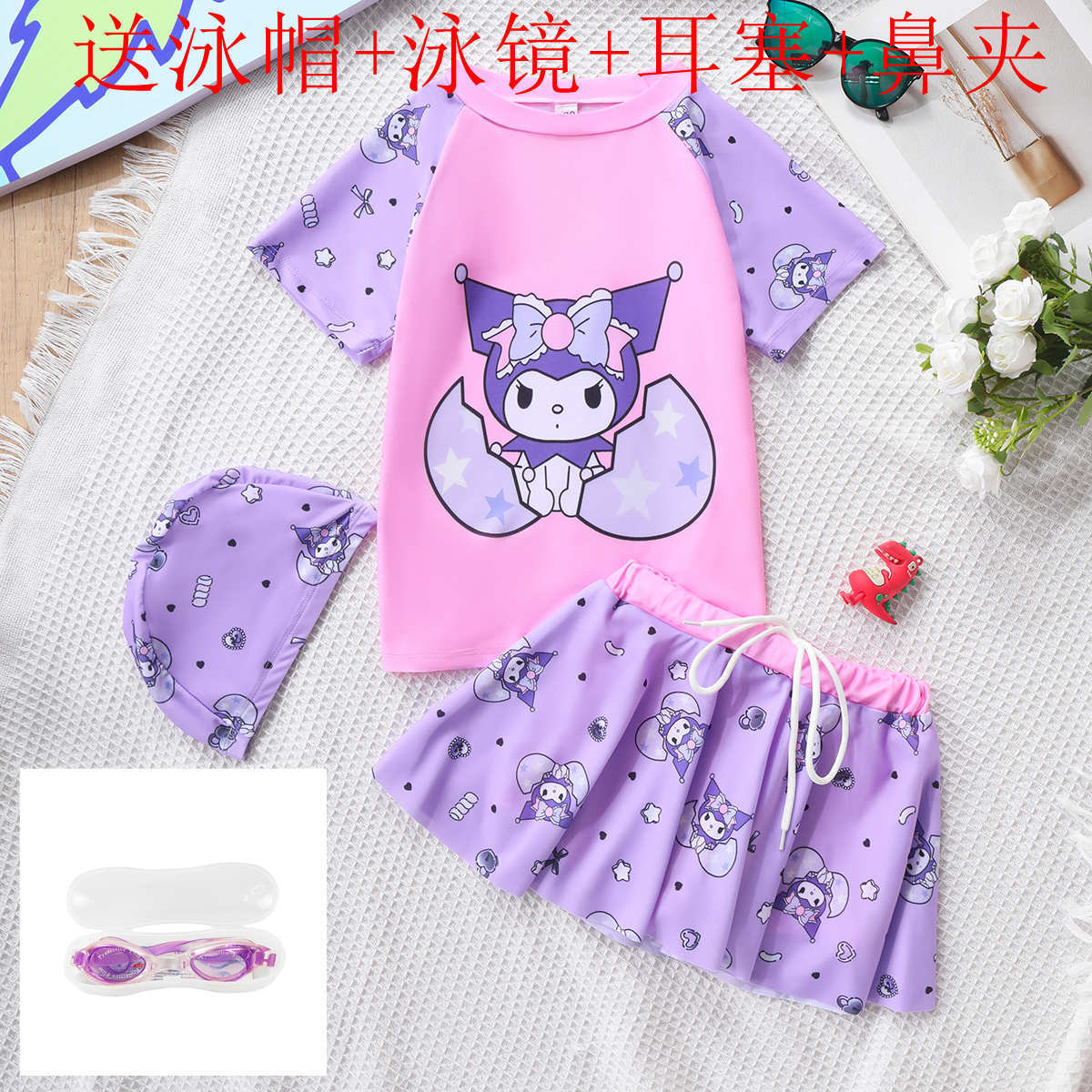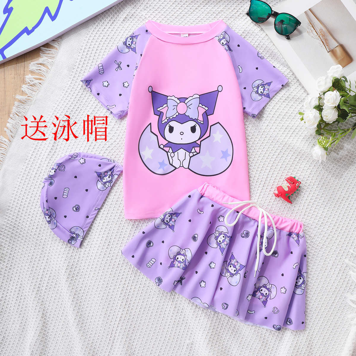 쿠로미 여아 수영복 세트 신상 중대형 어린이 훈련용 전문 수영복 속건성 분리형 스커트 스타일 투피스 세트스토어 가기