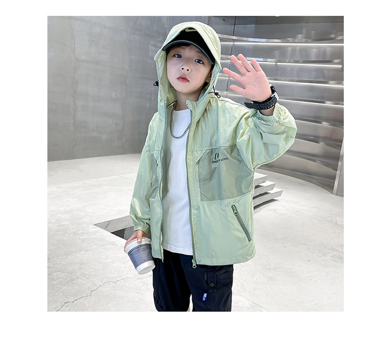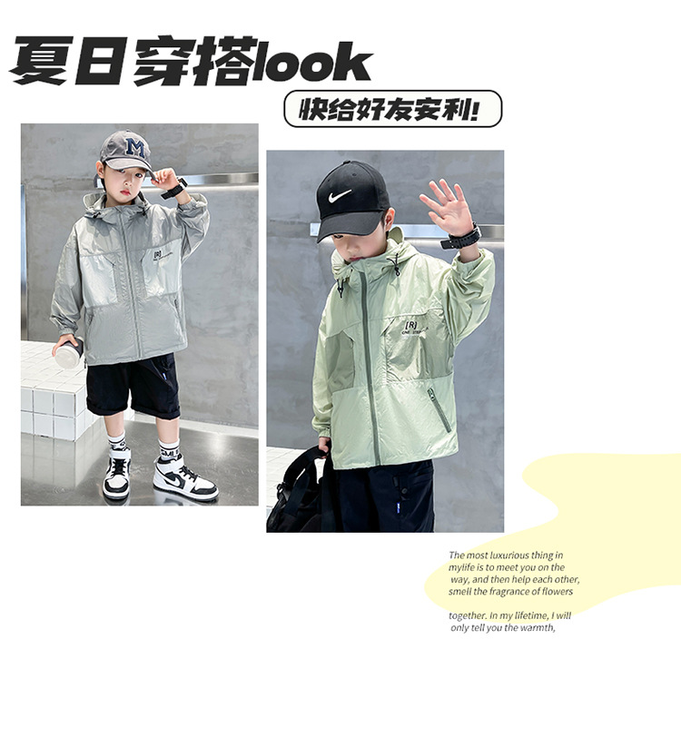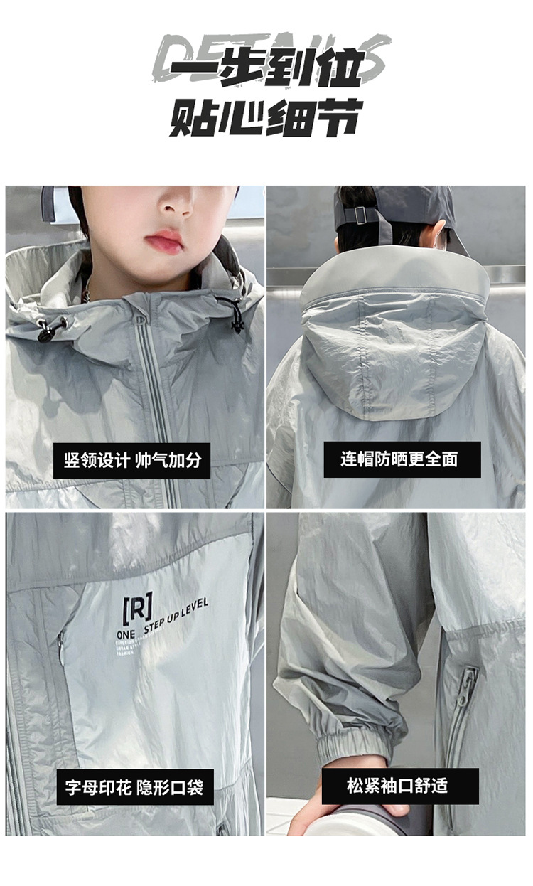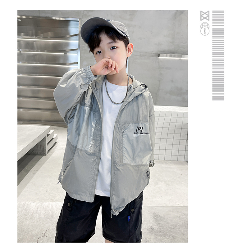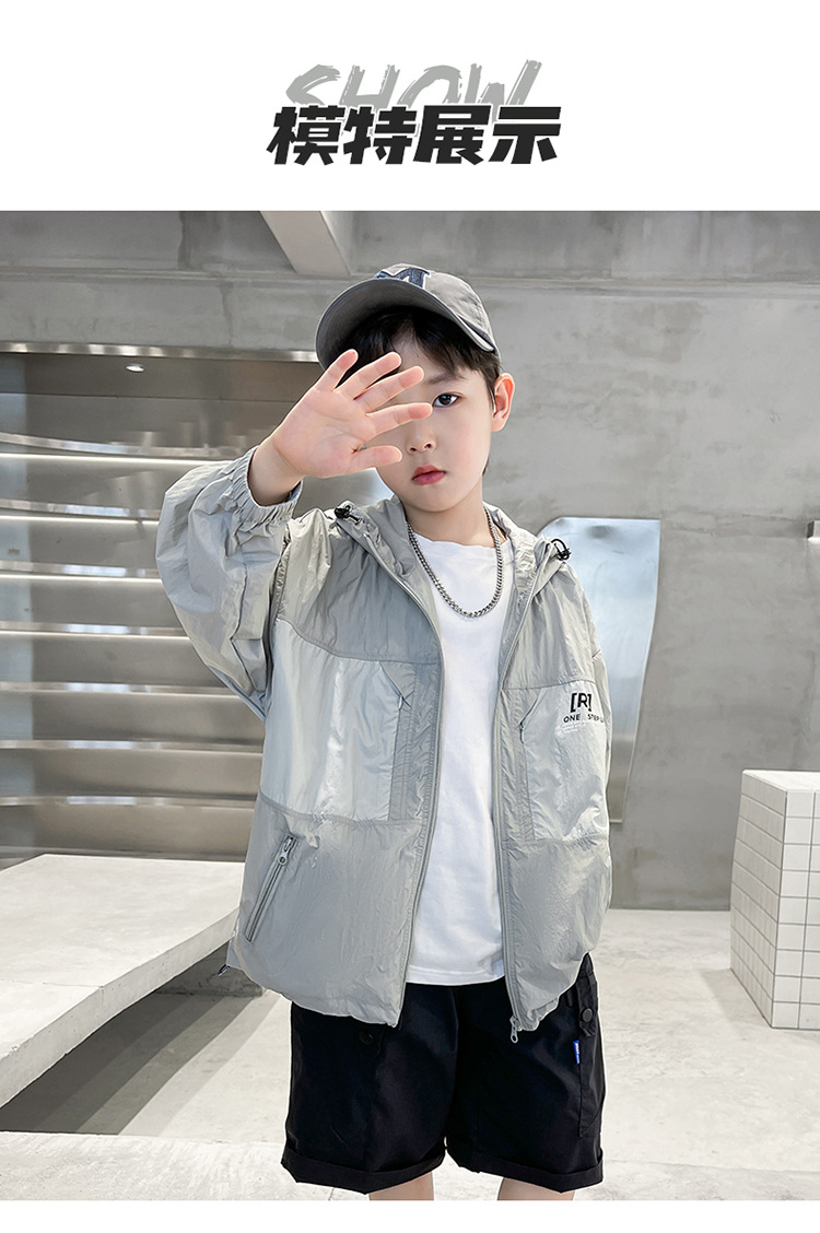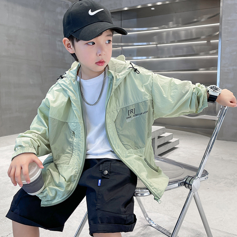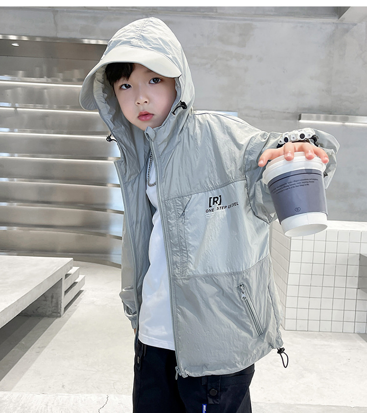 어린이 의류 소년의 여름 태양 보호 의류 코트 2024 신식 중형 및 대형 어린이 여름 소년의 얇은 통기성 태양 보호 의류