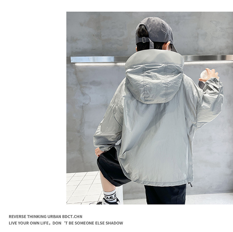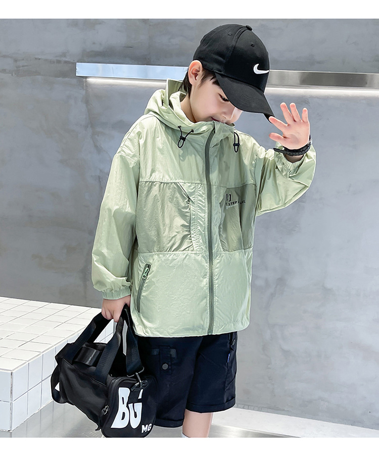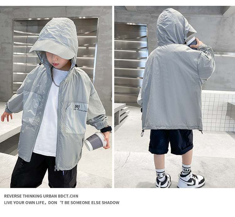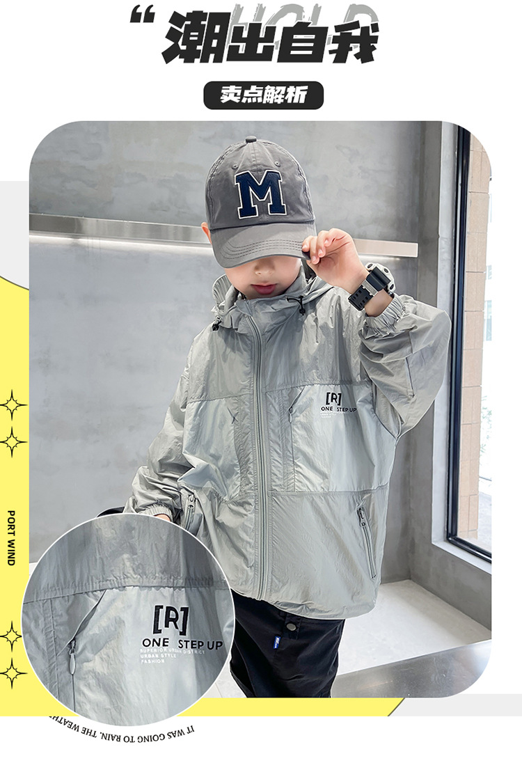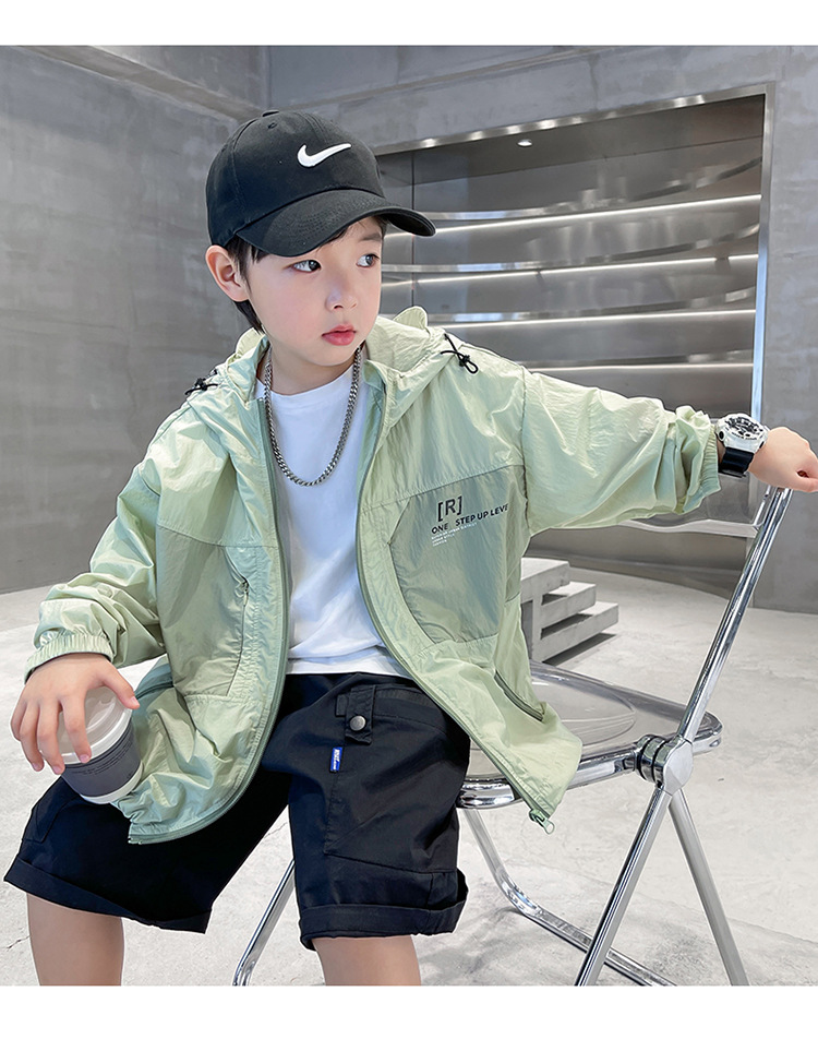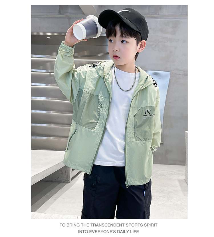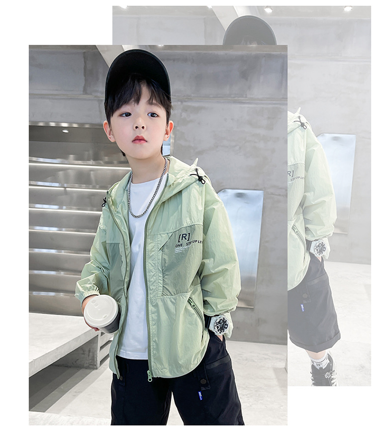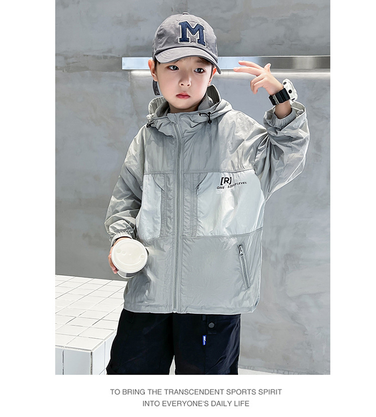 어린이 의류 소년의 여름 태양 보호 의류 코트 2024 신식 중형 및 대형 어린이 여름 소년의 얇은 통기성 태양 보호 의류